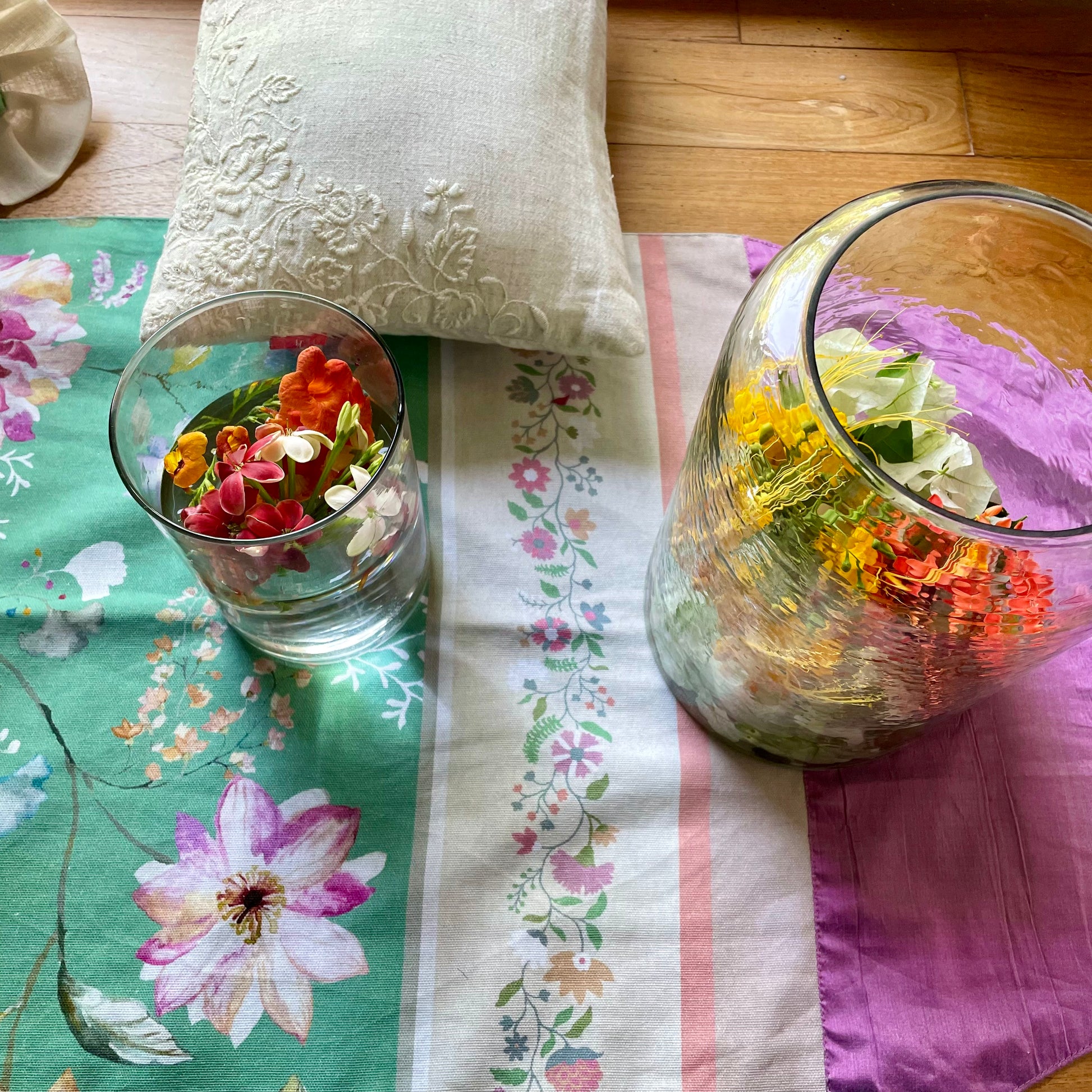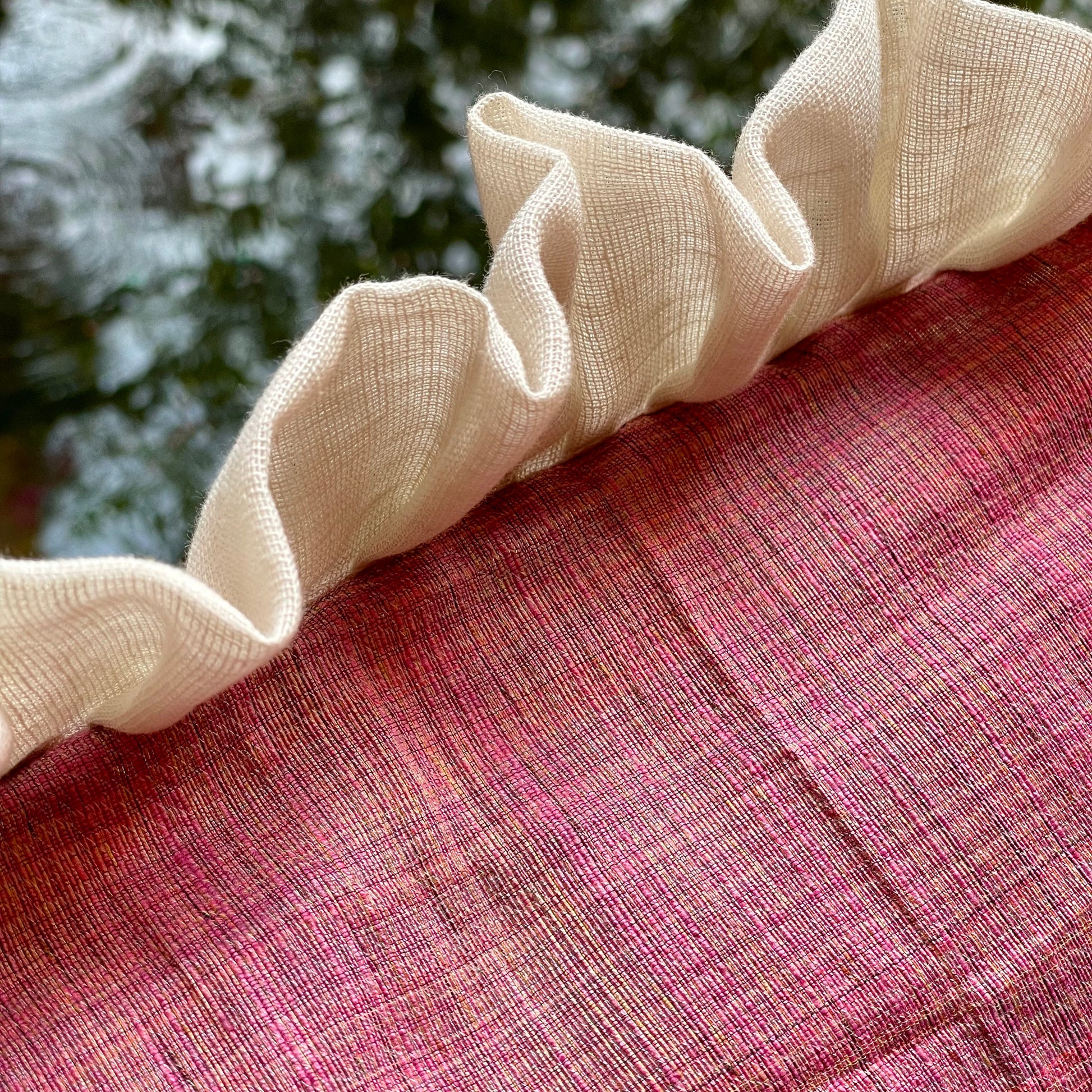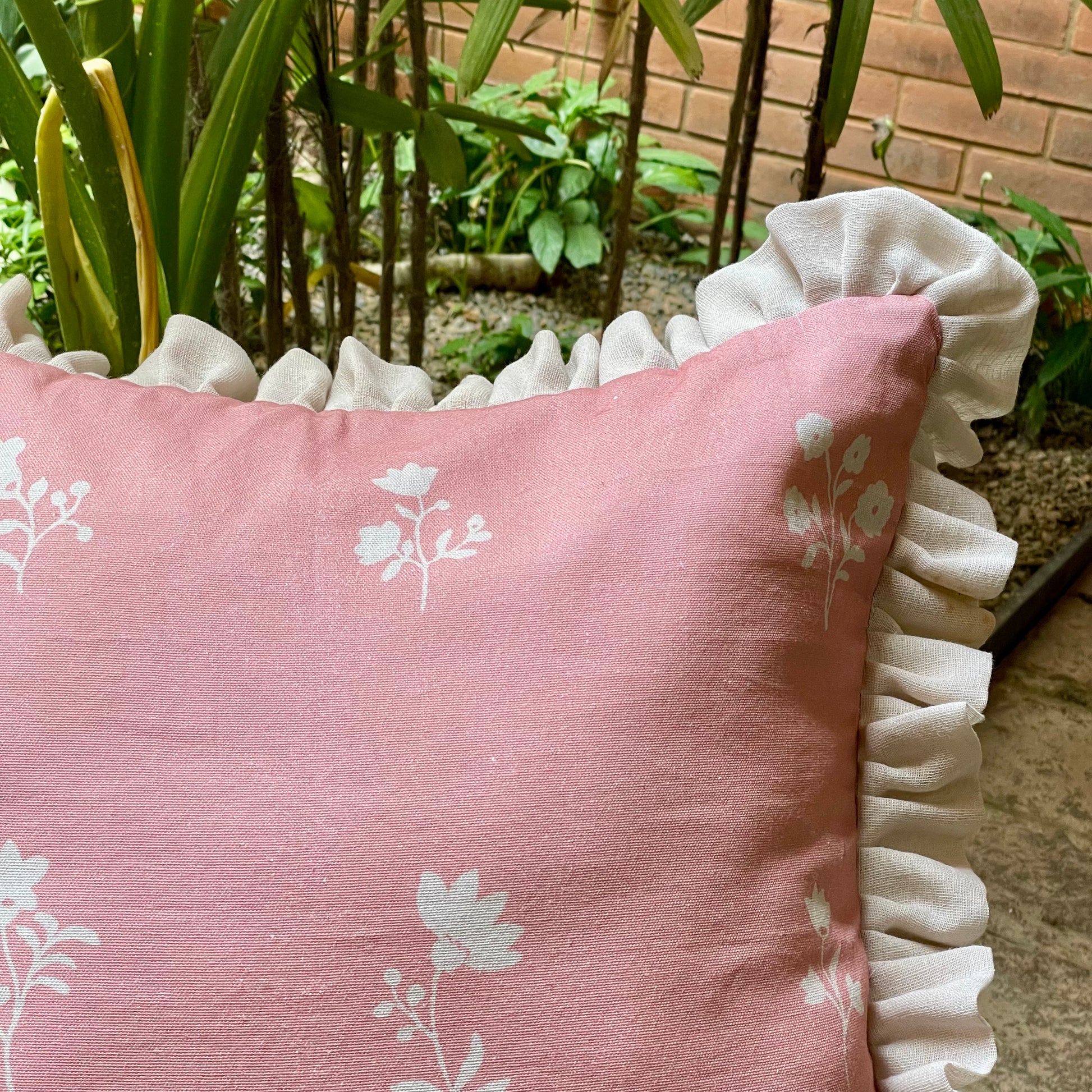 Frills and ruffles bring in the vintage charm to any space. You could create this look by pairing, and layering with chintz and chinoiserie prints. Available in these fresh summer colour in cotton these not only bring in charm but as well evoke a vintage retro aesthetic that adds a romantic charm to any space. Incorporating these decorative elements, reminiscent of past eras, introduce texture and visual interest, transforming ordinary cushions into statement pieces. The resurgence of ruffles in interior design reflects a desire to blend nostalgia with contemporary style. This delicate detailing softens bold colors and complements patterns like chintz, checks, and stripes, creating a maximalist country look. By adorning cushions with frills and ruffles, one can infuse a room with a sense of warmth and elegance. Whether placed on a vintage armchair or a modern sofa, these cushions can bridge different styles, adding depth and character to your interior design. The gentle playfulness of ruffled cushions ensures that the decor remains inviting and thoughtfully curated.