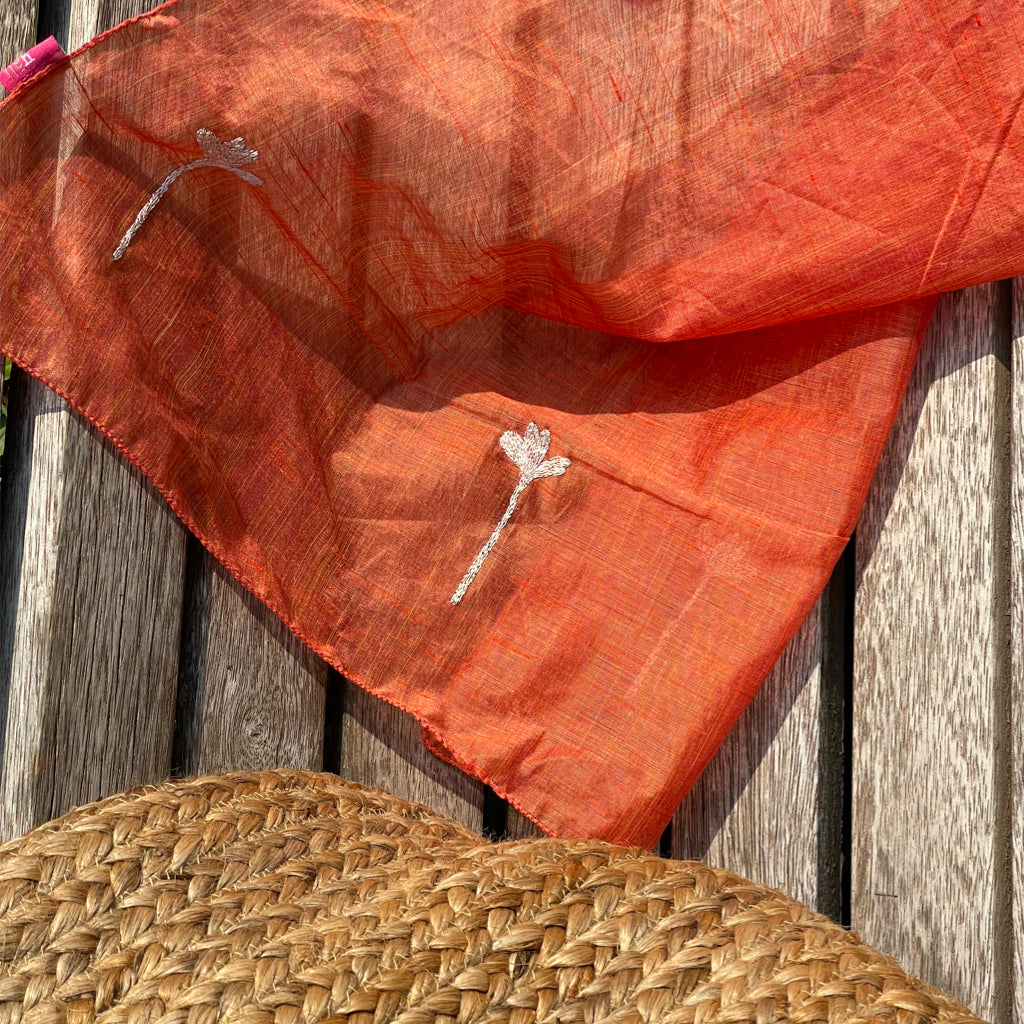 A hand-embroidered stole is more than just a layer of fabric- it is a wearable piece of art that reflects timeless craftsmanship and delicate detail. As an accessory, it brings both grace and individuality to any outfit, whether draped casually over the shoulders or elegantly wrapped around the neck. When paired with hand embroidery, the result is a stole that looks both ethereal and regal, perfect for festive occasions, formal gatherings, or as a statement layer over a minimalist ensemble. Each hand embroidered stole tells a story- crafted slowly, stitch by stitch, by skilled artisans. Motifs may be floral, geometric, or rooted in cultural symbolism, brought to life through various techniques. The irregularities in stitching are a mark of authenticity, each one adding to its charm. A hand-embroidered stole is endlessly versatile. Whether worn casually or ceremonially, a hand-embroidered stole in cotton or chanderi stands out as a soulful accessory- one that carries both heritage and elegance, and always tells a story through its thread.