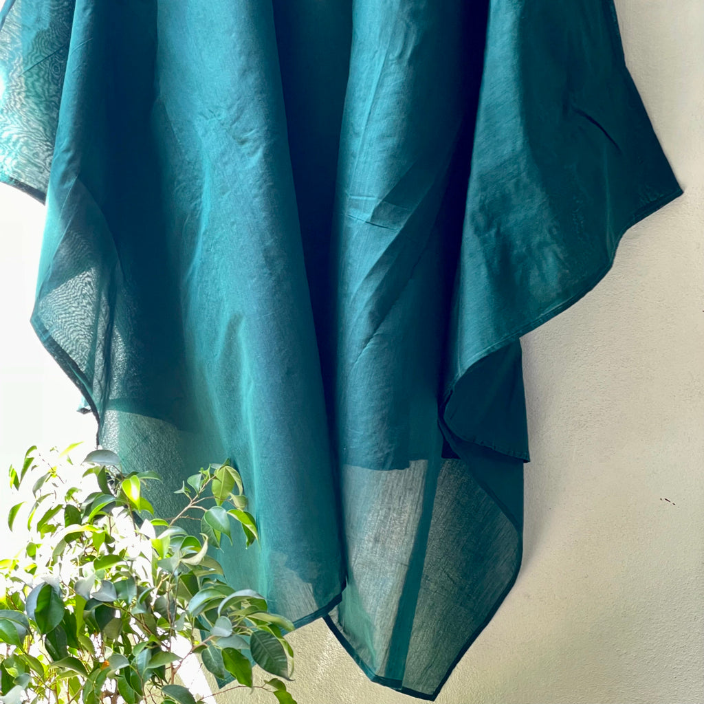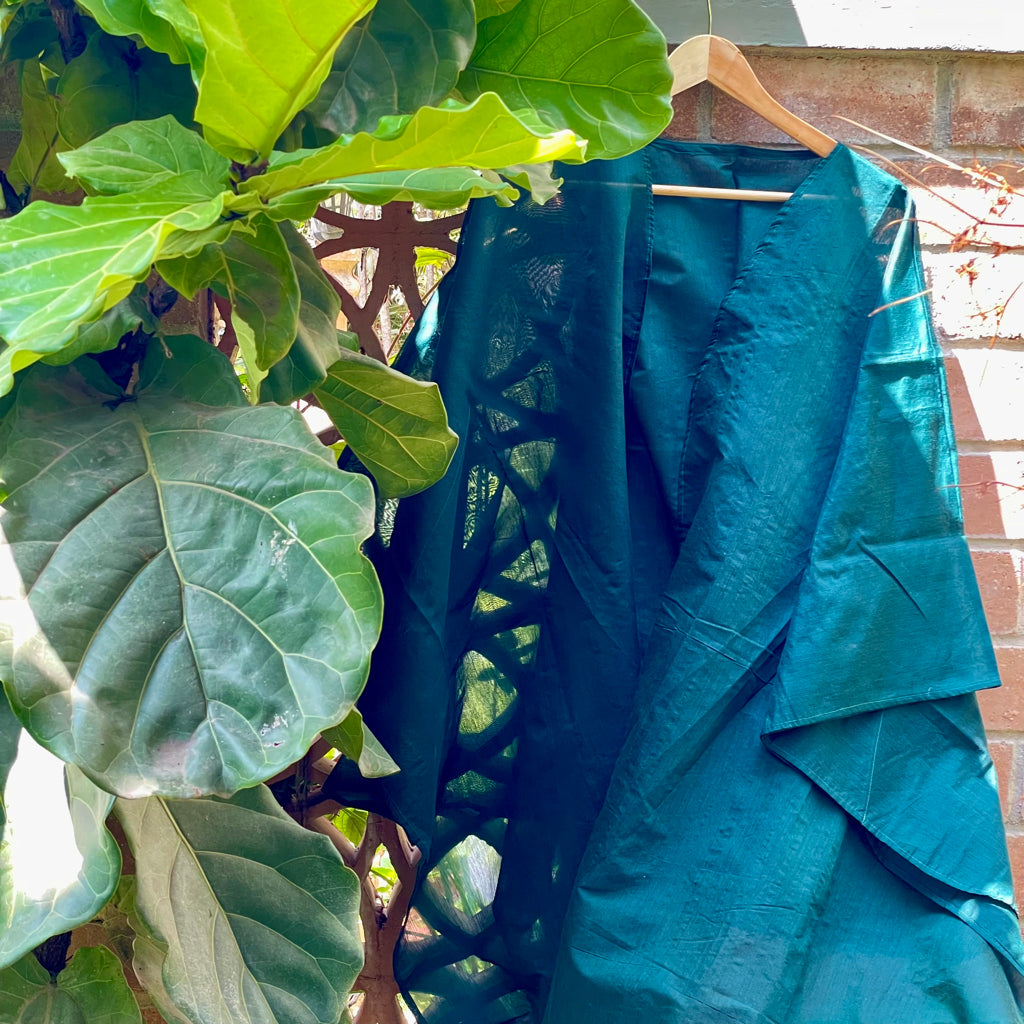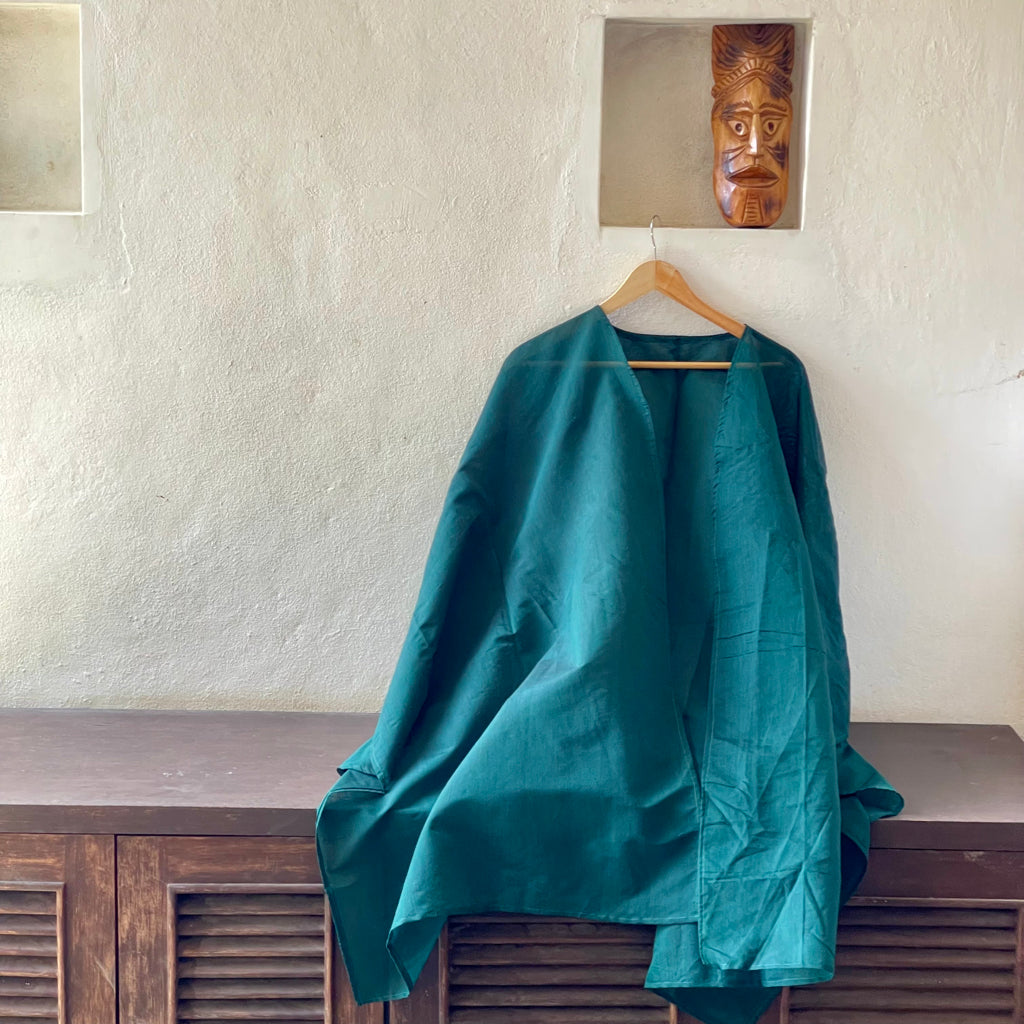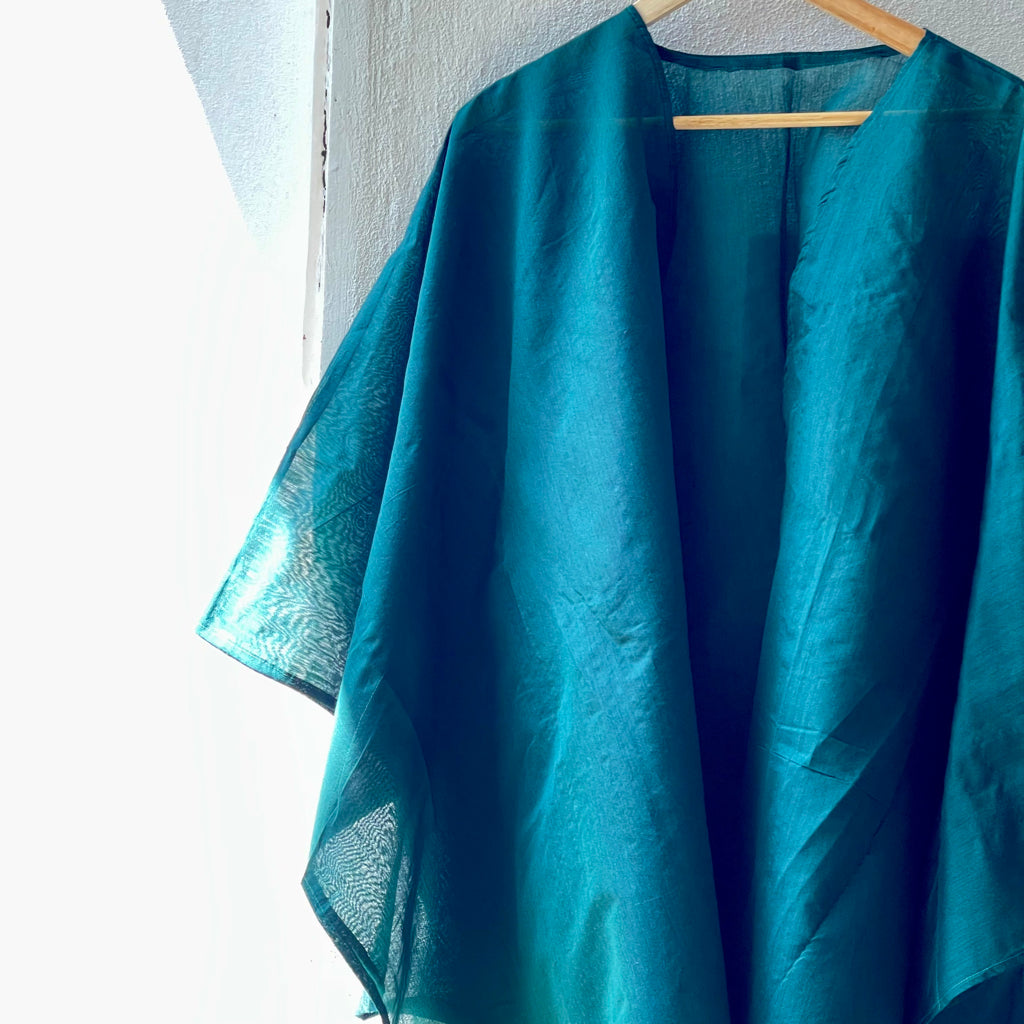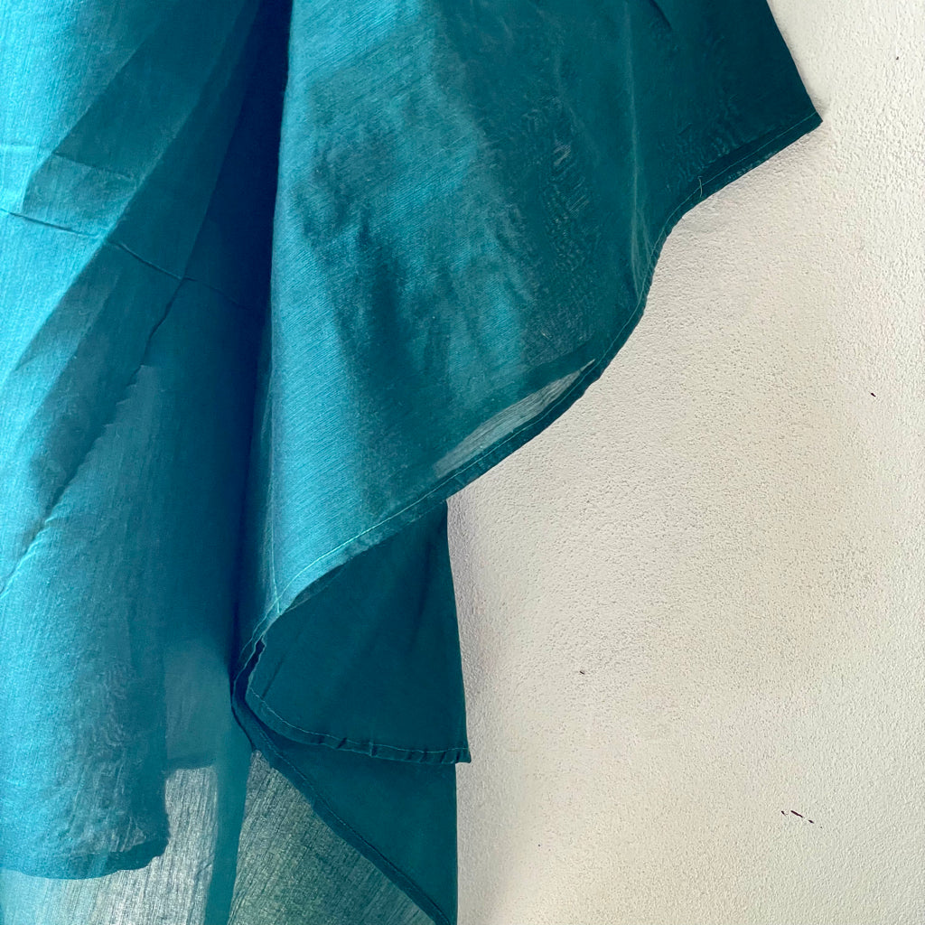 Chanderi—a fabric known for its sheer texture, delicate shine, and regal drape—meets modern styling in teal-hued contemporary shrugs, creating the perfect blend of tradition and trend for elevated evening wear. Contemporary cuts like longline shrugs, cape styles, and structured overlays add a fashion-forward edge to the classic Chanderi. Pair it with -A black slip dress or palazzo set for a glam night out. High-waisted trousers and a crop top for an Indo-western vibe. Chanderi fabric exudes a subtle shimmer that catches the light just right, making it ideal for evening settings. The teal tone brings a sense of freshness and sophistication—calm, confident, and undeniably graceful. Unlike heavy evening layers, Chanderi shrugs are weightless yet impactful. They bring elegance without effort—perfect for dinners, festive evenings, or formal events where you want to shine subtly. The color teal bridges the calm of blue and the energy of green. In Chanderi, it becomes a statement—rich, refined, and ideal for transitioning from daytime subtlety to evening charm. In essence, contemporary Chanderi shrugs in teal offer the best of both worlds: the grandeur of heritage and the simplicity of modern design. They’re perfect for women who want to turn heads without trying too hard.