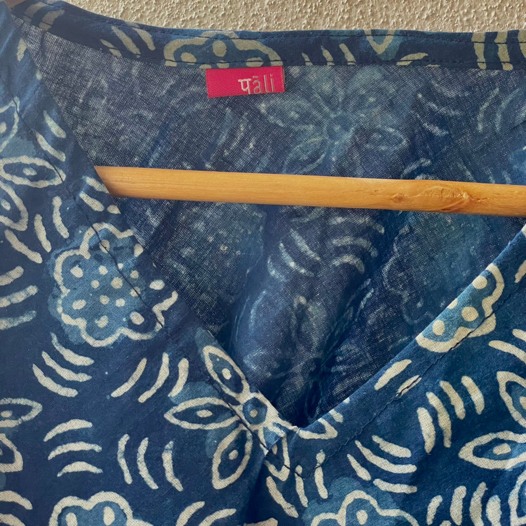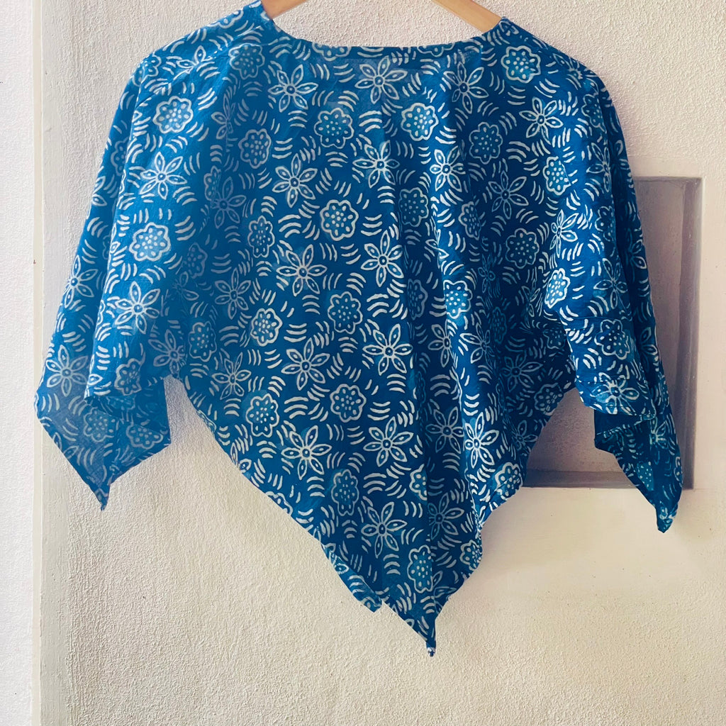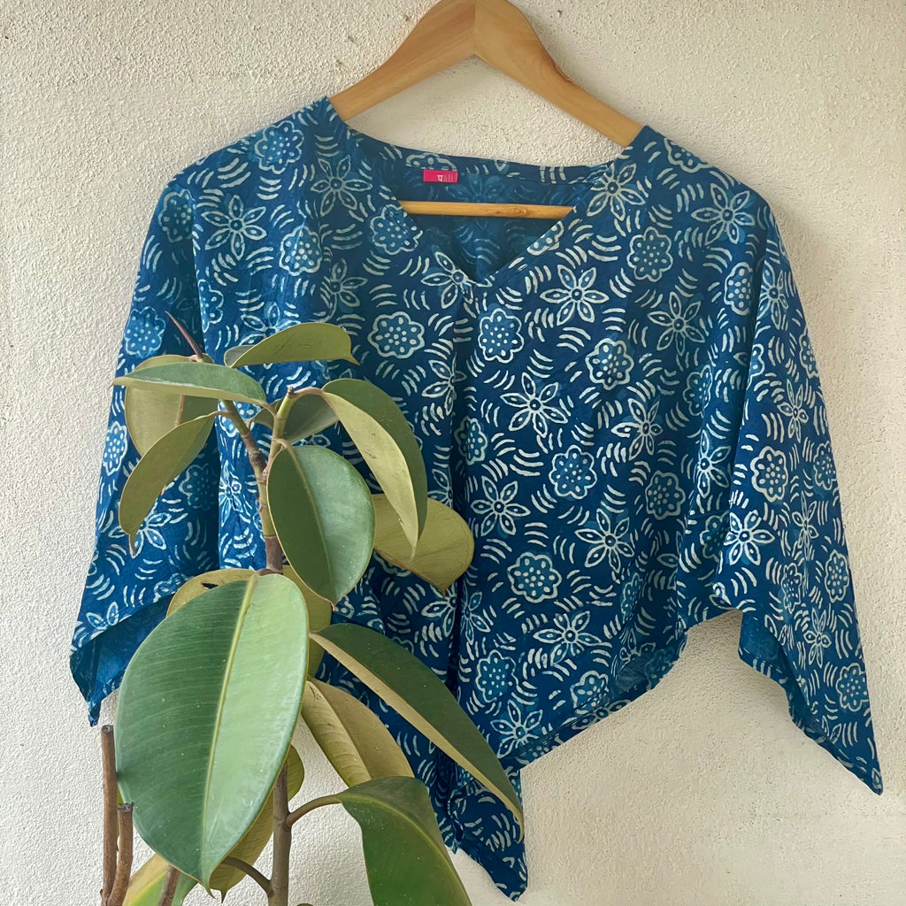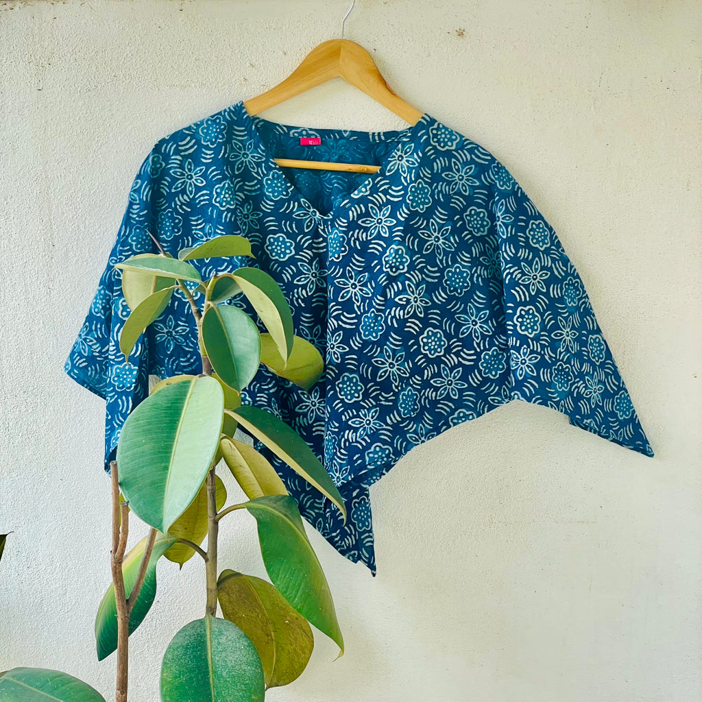 This unique block printed top offers a rich aesthetic and a versatile style making it a standout choice for contemporary wardrobes. It serves as a bridge between India’s cultural; legacy and the demands of modern fashion. The inherent softness and breathability of cotton makes these fabrics ideal for everyday wear. India’s diverse climates. Cotton fabrics exemplify how traditional materials can be transformed into modern wardrobe staples that are as practical as they are beautiful and provide the perfect blend of comfort, style, and cultural depth. This serves as the perfect picnic wear to cycle around the hills over the holidays collecting wild flowers with a basket. Club it with a wrap skirt, shorts or a pair of jeans as per the weather, with a woven cane hat. Size: 50 inches x 22 inches
