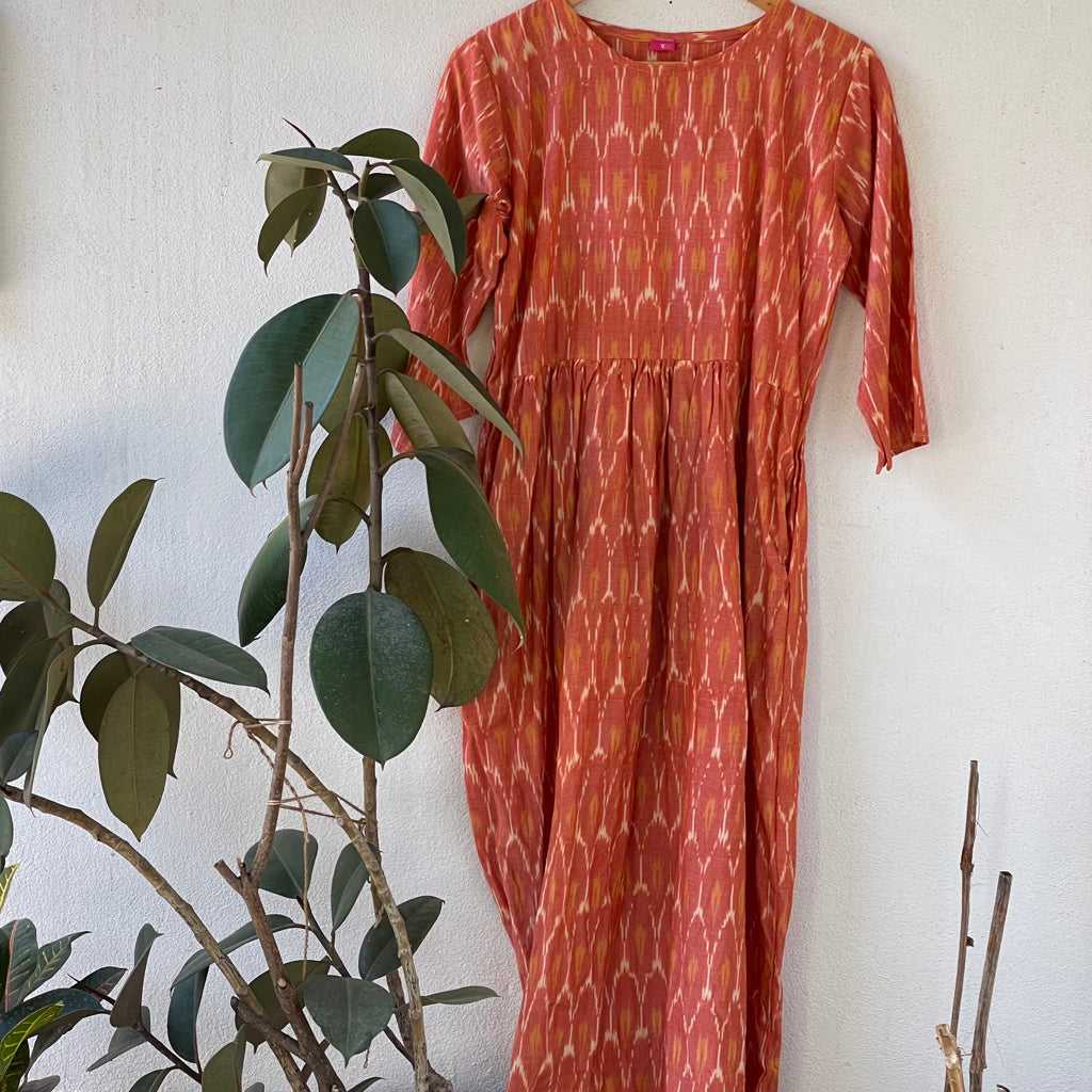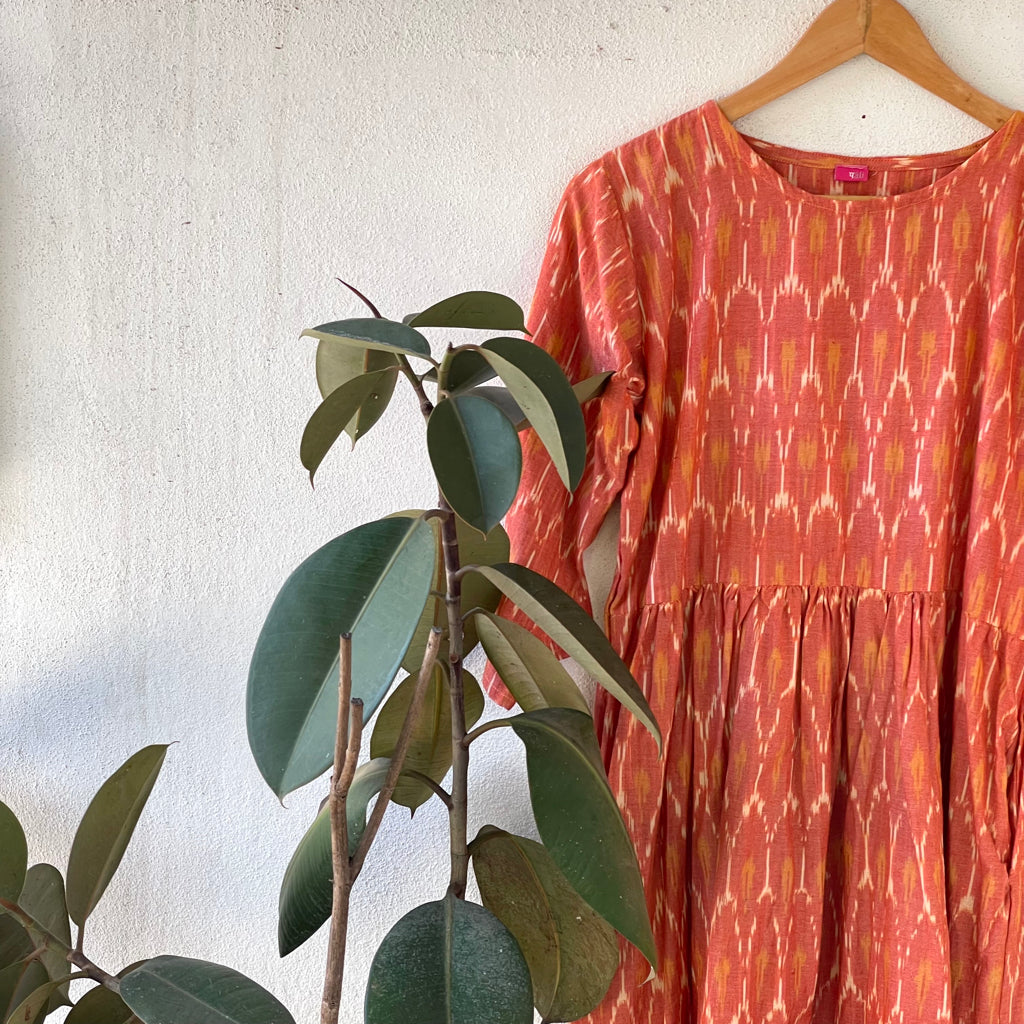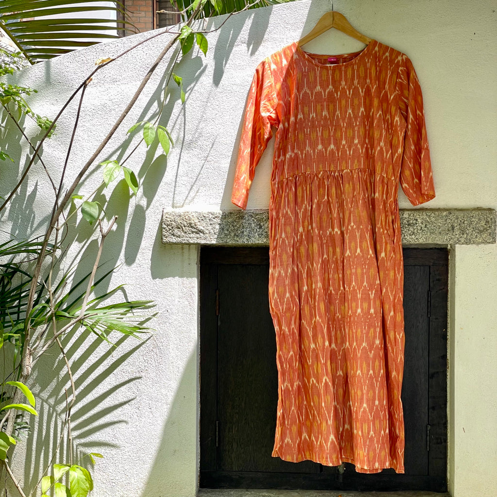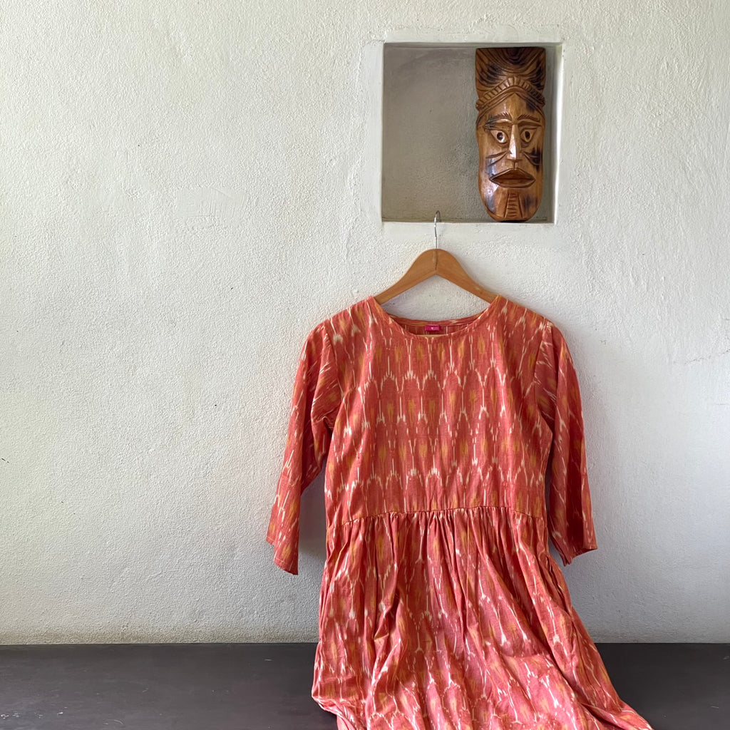 A cotton summer dress in Ikat isn’t just a piece of clothing—it’s a perfect blend of tradition, trend, and thoughtful fashion. With its breezy comfort, unique patterns, and handcrafted charm, it stands out as a go-to choice for conscious style lovers. Each dress tells a story—no two are exactly alike. The artistry adds depth and movement, giving the dress a fresh, bold, and boho-chic vibe that never goes out of fashion. Crafted in breathable cotton, an Ikat summer dress keeps you cool, airy, and effortlessly elegant—even on the hottest days. The fabric flows with ease, and the natural fibers make it soft on skin and perfect for long summer days. Choosing an Ikat cotton dress means supporting handloom artisans and eco-conscious fashion. You’re not just wearing a dress—you’re wearing values. These are often produced in small batches, supporting slow fashion A cotton summer Ikat dress brings effortless style, artisan soul, and sustainable fashion together in one fabulous piece—proving that fashion can be conscious and cool.