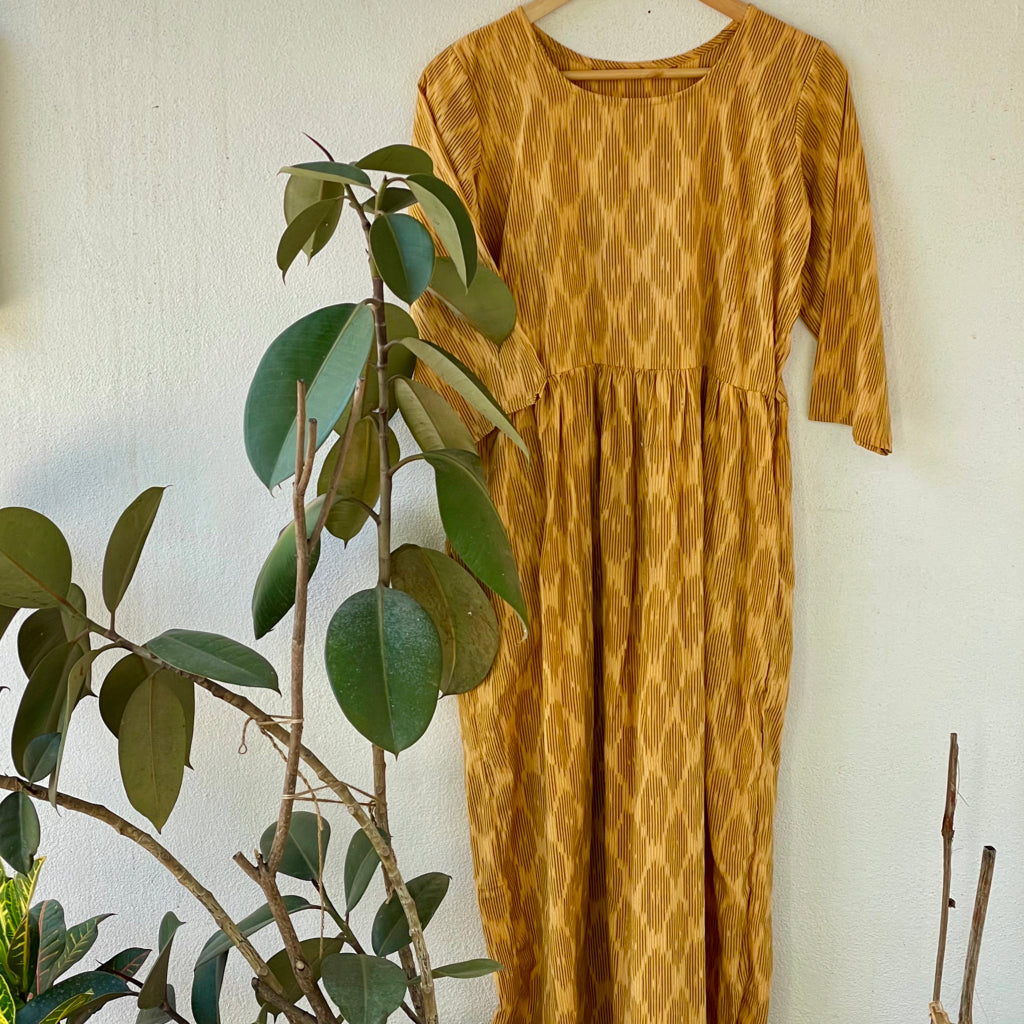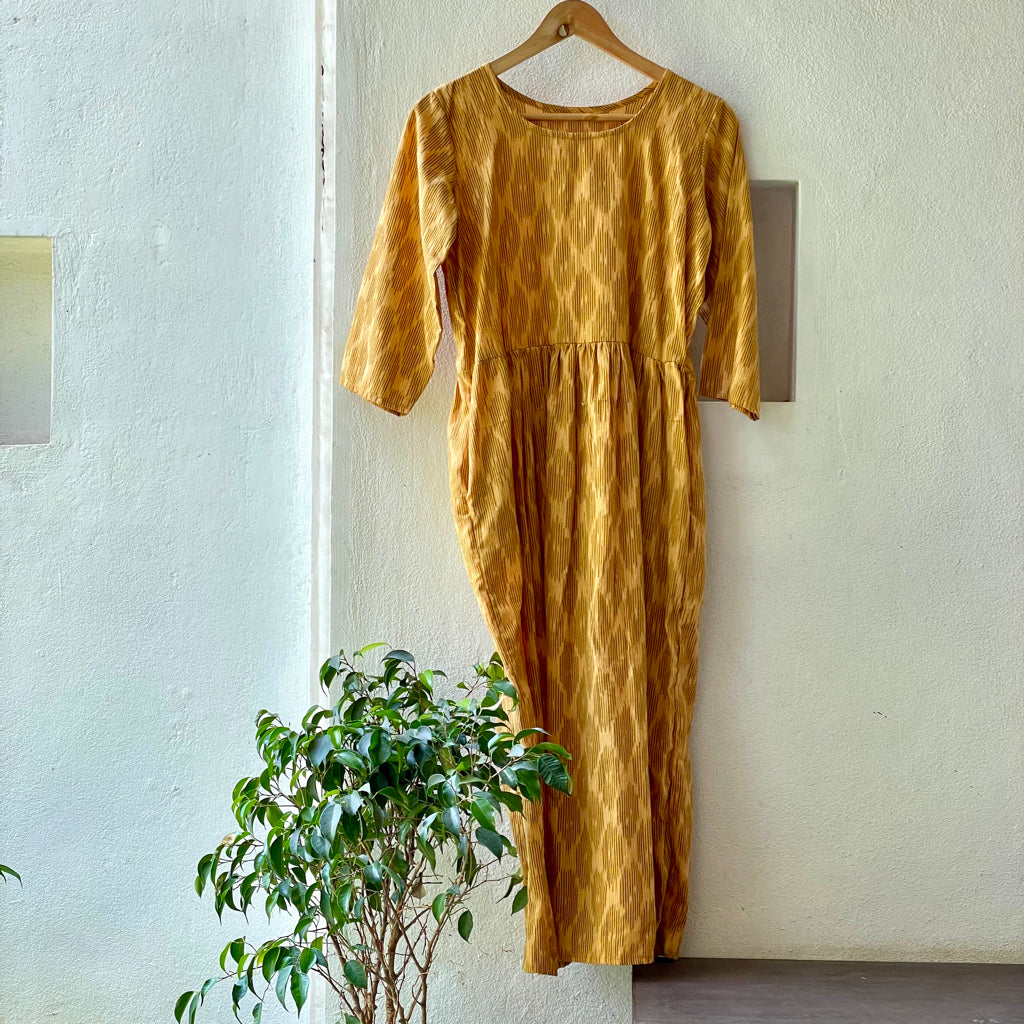 A cotton summer dress in Ikat isn’t just a piece of clothing—it’s a perfect blend of tradition, trend, and thoughtful fashion. With its breezy comfort, unique patterns, and handcrafted charm, it stands out as a go-to choice for conscious style lovers. Each dress tells a story—no two are exactly alike. The artistry adds depth and movement, giving the dress a fresh, bold, and boho-chic vibe that never goes out of fashion. Crafted in breathable cotton, an Ikat summer dress keeps you cool, airy, and effortlessly elegant—even on the hottest days. The fabric flows with ease, and the natural fibers make it soft on skin and perfect for long summer days. Choosing an Ikat cotton dress means supporting handloom artisans and eco-conscious fashion. You’re not just wearing a dress—you’re wearing values. These are often produced in small batches, supporting slow fashion A cotton summer Ikat dress brings effortless style, artisan soul, and sustainable fashion together in one fabulous piece—proving that fashion can be conscious and cool.