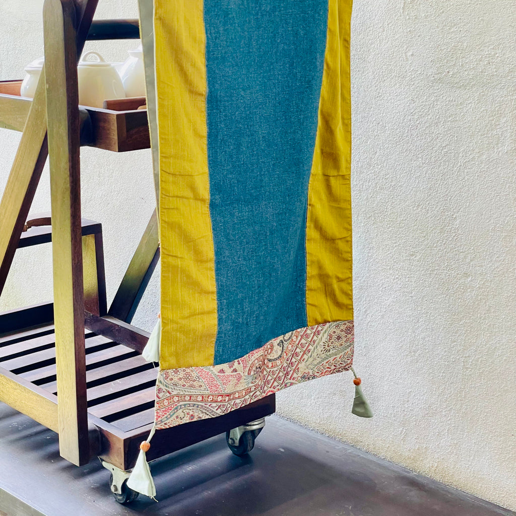 Immerse in a summer afternoon of long tea sessions with freshly brewed tea/ or sherbet with your favourite pâtisseries and profiterole, shared joyously with your friends, family and loved ones. A perfect way to create moments with your friends and folks. Presenting these vibrant and expressive runners and cushions. These add elegance to your tea drinking sessions and provide the story telling. Home decor brings in more than just aesthetics- it’s a reflection of who we are, what we value, and the stories we wish to tell. Available more as a conversational piece centred around style and decor around home- these could be clubbed with runner sets. Coffee Table Runner.