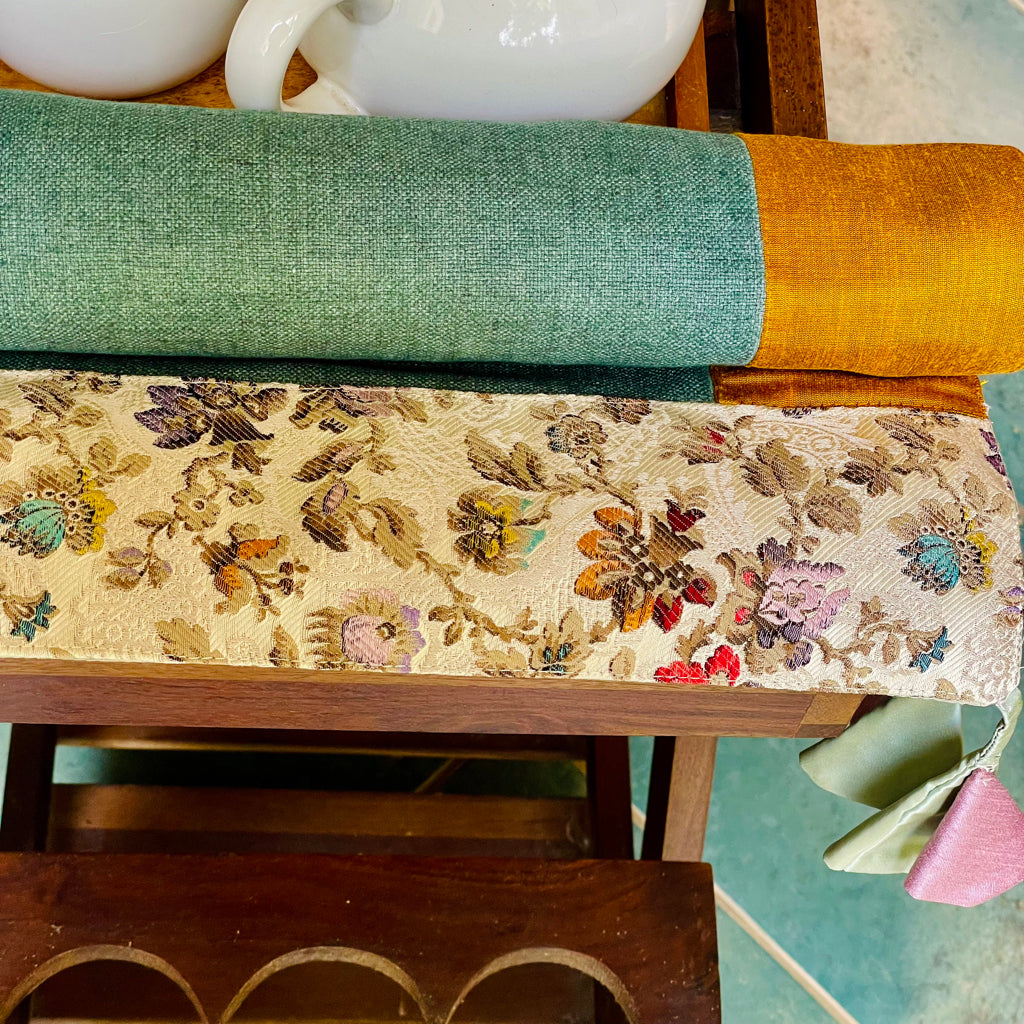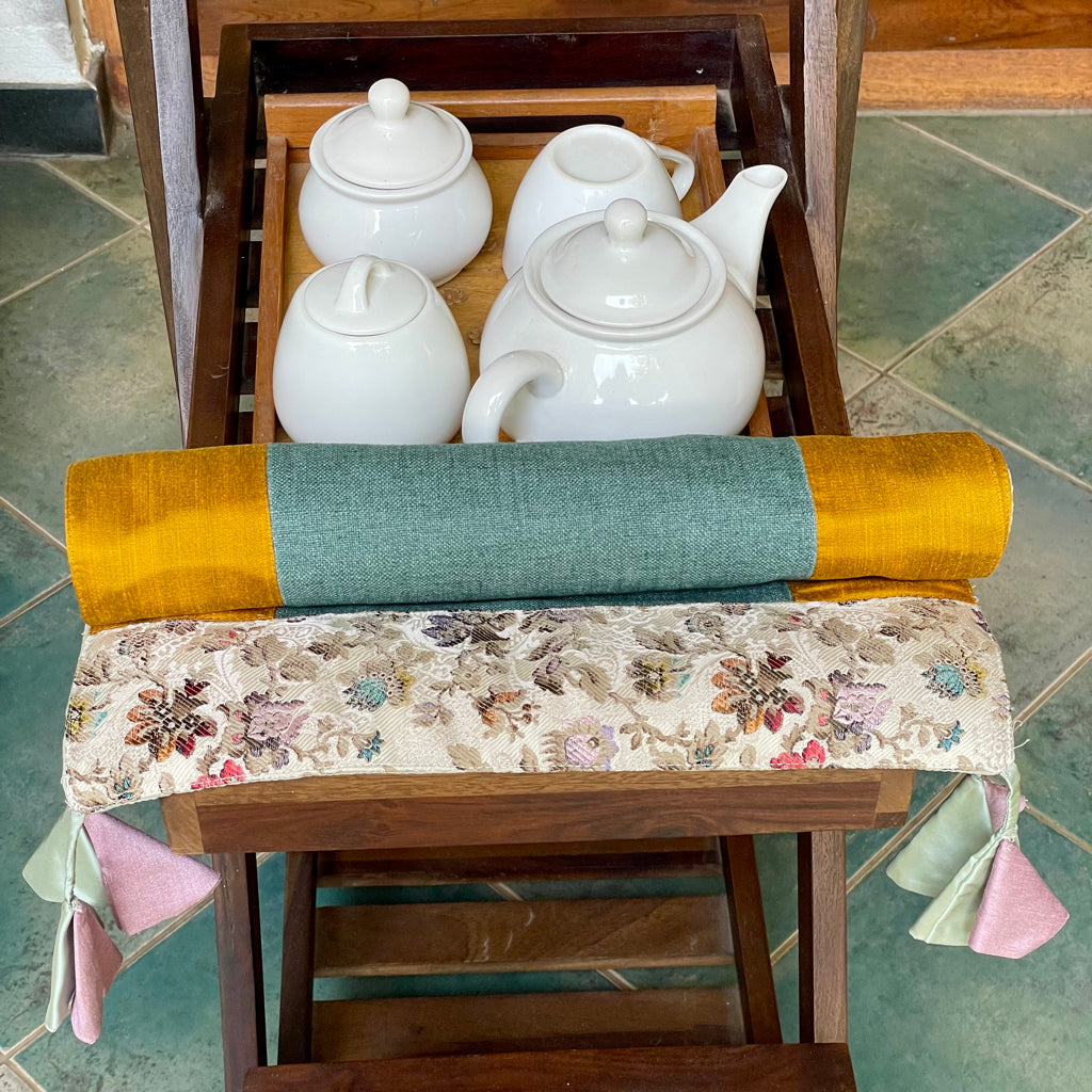 Immerse in a summer afternoon of long tea sessions with freshly brewed tea/ or sherbet with your favourite pâtisseries and profiterole, shared joyously with your friends, family and loved ones. A perfect way to create moments with your friends and folks. Presenting these vibrant and expressive runners and cushions. These add elegance to your tea drinking sessions and provide the story telling. Home decor brings in more than just aesthetics- it’s a reflection of who we are, what we value, and the stories we wish to tell. Available more as a conversational piece centred around style and decor around home- these could be clubbed with runner sets.