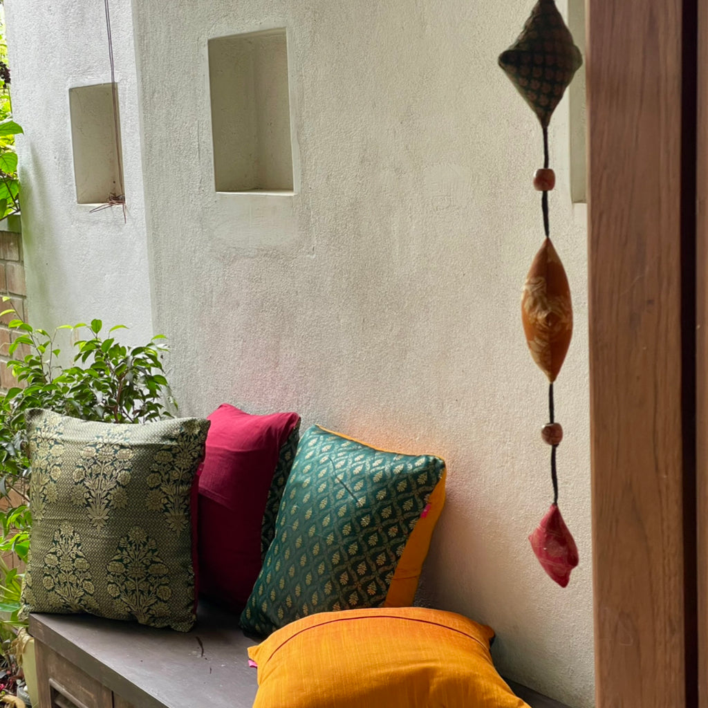 Mekong Almond & Sangria Cushion Cover with filler - 7 x 7 - Set of 2