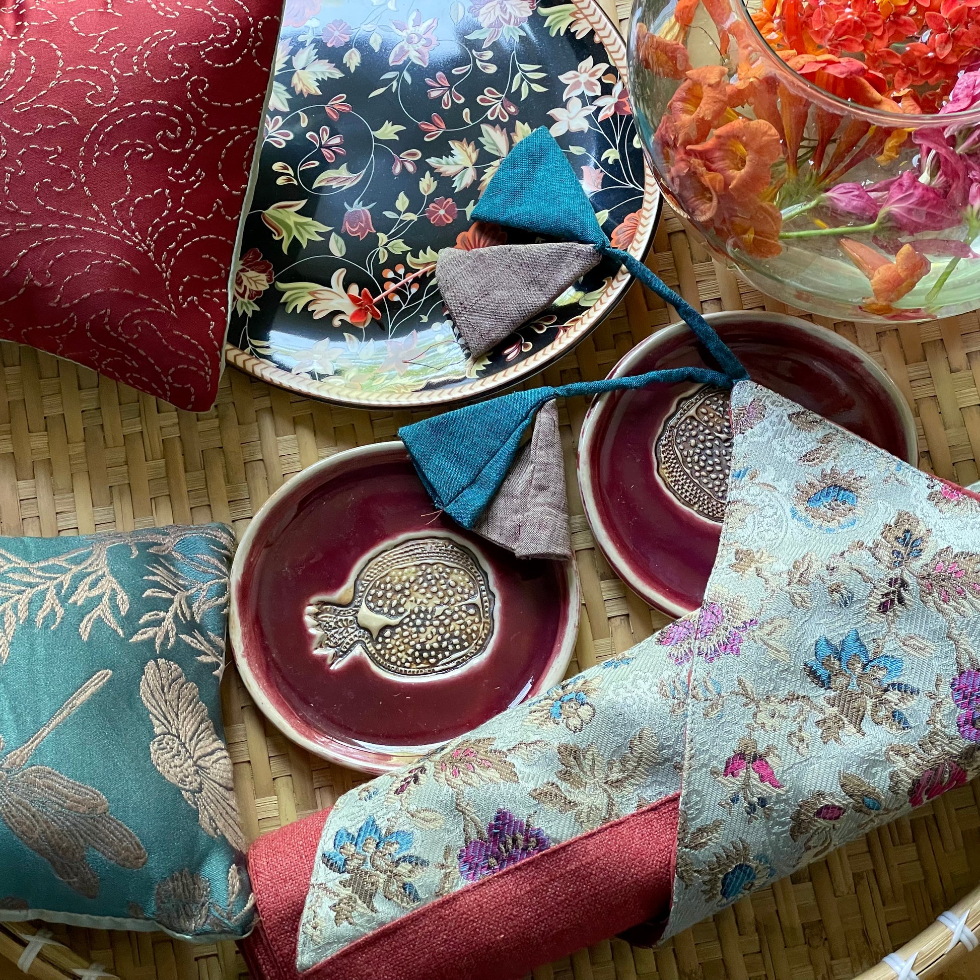 Immerse in a summer afternoon of long tea sessions with freshly brewed tea/ or sherbet with your favourite pâtisseries and profiterole, shared joyously with your friends, family and loved ones. A perfect way to create moments with your friends and folks. Presenting these vibrant and expressive runners and cushions. These add elegance to your tea drinking sessions and provide the story telling. Home decor brings in more than just aesthetics- it’s a reflection of who we are, what we value, and the stories we wish to tell. Available more as a conversational piece centred around style and decor around home- these could be clubbed with runner sets.