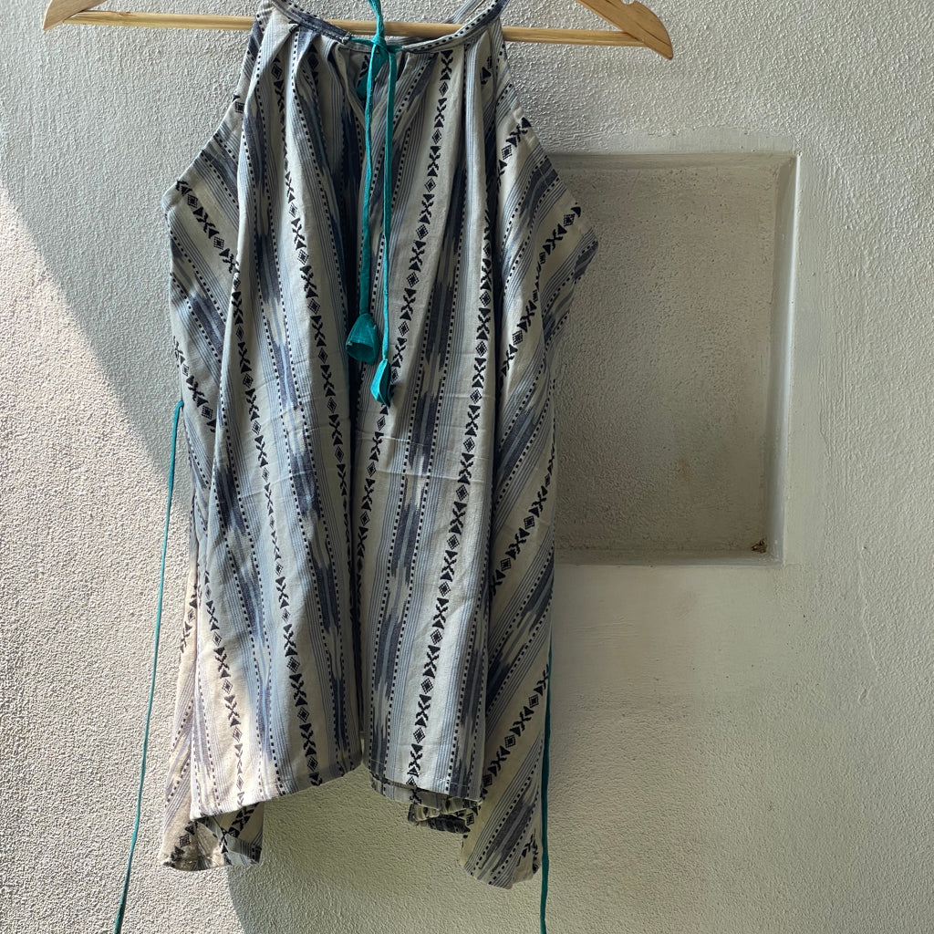 In these contemporary cuts, these fabrics blend traditional craftsmanship with modern style. These fabrics are made using pure cotton and are famous for their durability, softness, and breathability, making them an excellent choice for apparel wear. Cotton makes a fabric breathable allows air circulation, keeping the wearer cool and comfortable, especially in hot and humid climates. The stripes add a stylish bohemian touch.Can be paired it with a wrop skirt, jeans or even with a pair of shorts.Try this breezy cotton summer tops for comfort and style.
