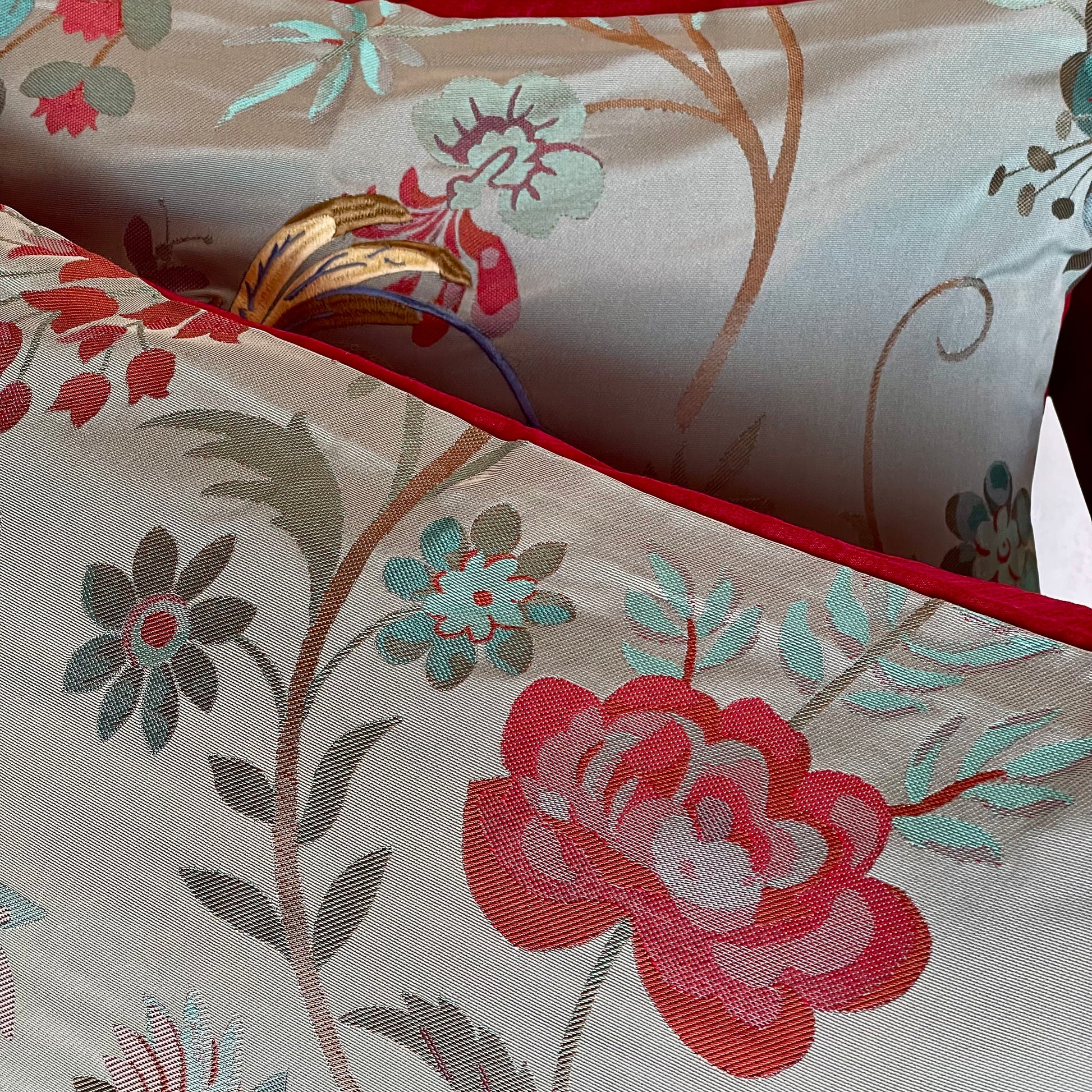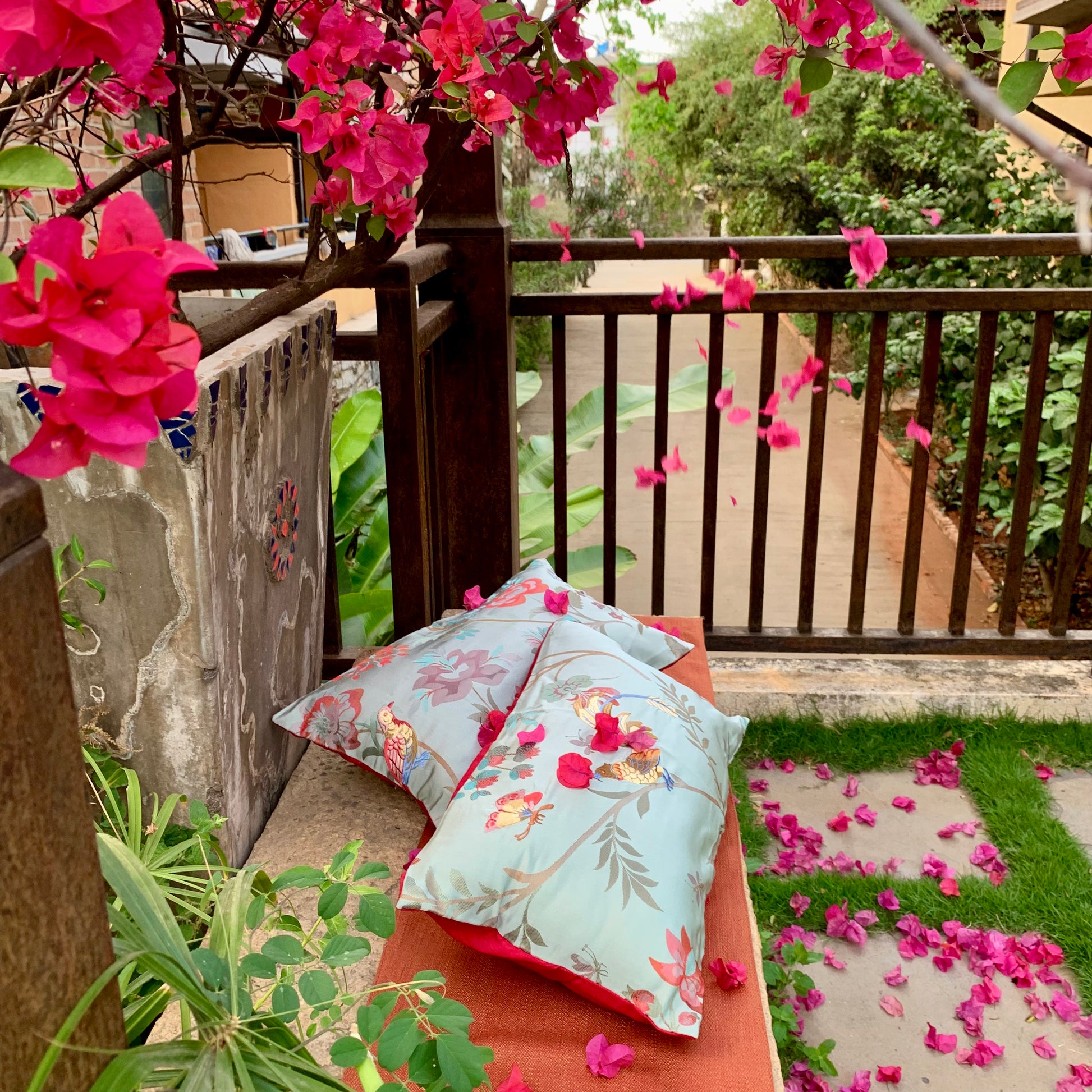 Cushions serve as storytellers in contemporary interiors. A set of floral silk cushions can evoke a garden in full bloom, a memory of a cherished travel destination, or a connection to one’s heritage. Through cushions, floral silk fabrics bring these narratives into homes, transforming everyday spaces into expressions of history, emotion, and art. Silk has been woven and adorned with floral motifs for centuries, from the intricate brocades of ancient China to the delicate embroidery of Mughal India and the lush botanical prints of European textiles. Each region has infused its own symbolism into floral designs—cherry blossoms for fleeting beauty in Japan, lotuses for purity in India, and roses for romance in the West. These motifs, when translated onto cushions, carry forward the storytelling tradition of silk, blending heritage with modern interior decor. Silk, a fabric synonymous with luxury, has long been a canvas for storytelling. When adorned with floral patterns, it becomes a living tapestry that speaks of nature’s beauty, cultural heritage, and artistic craftsmanship.