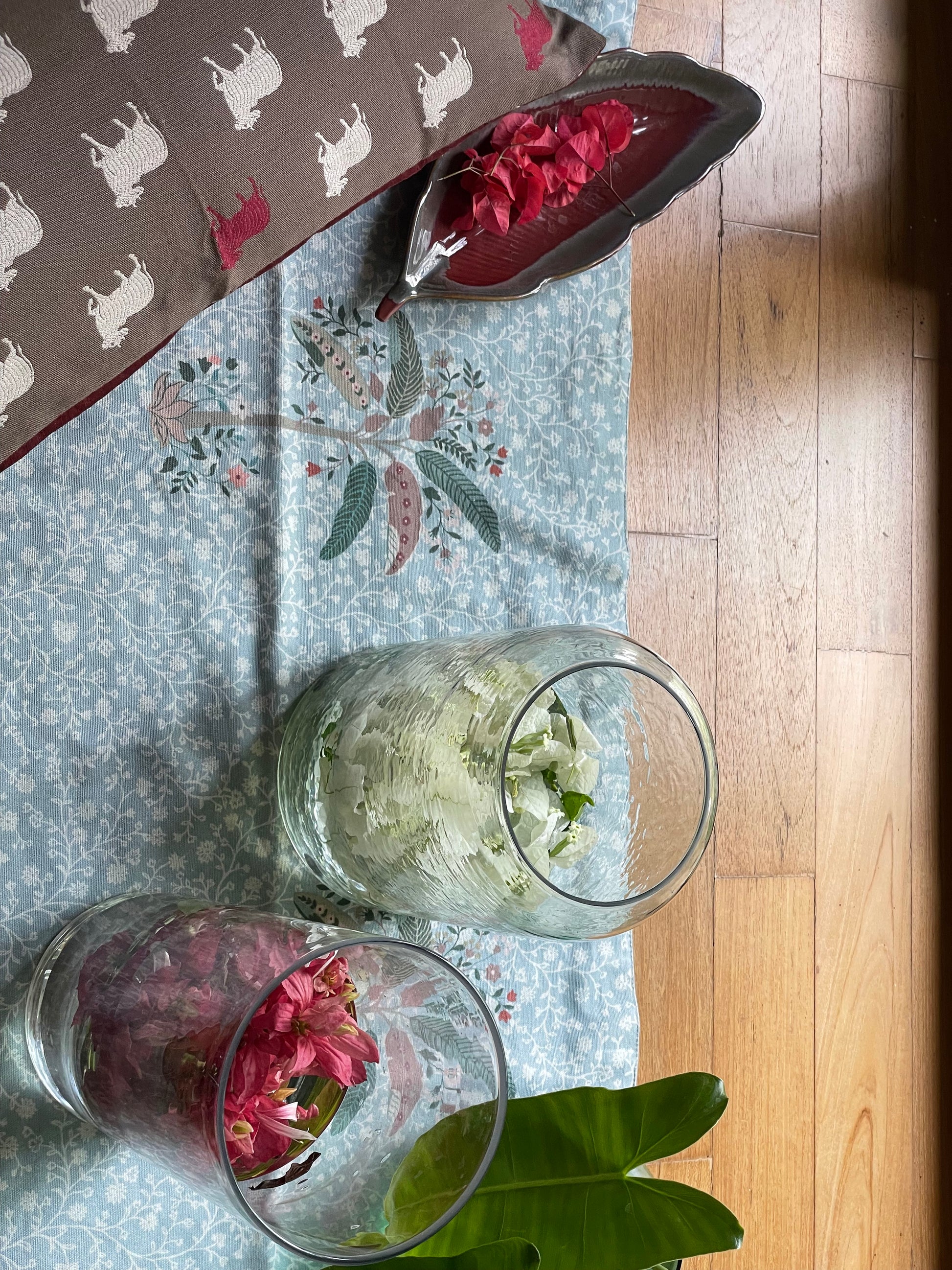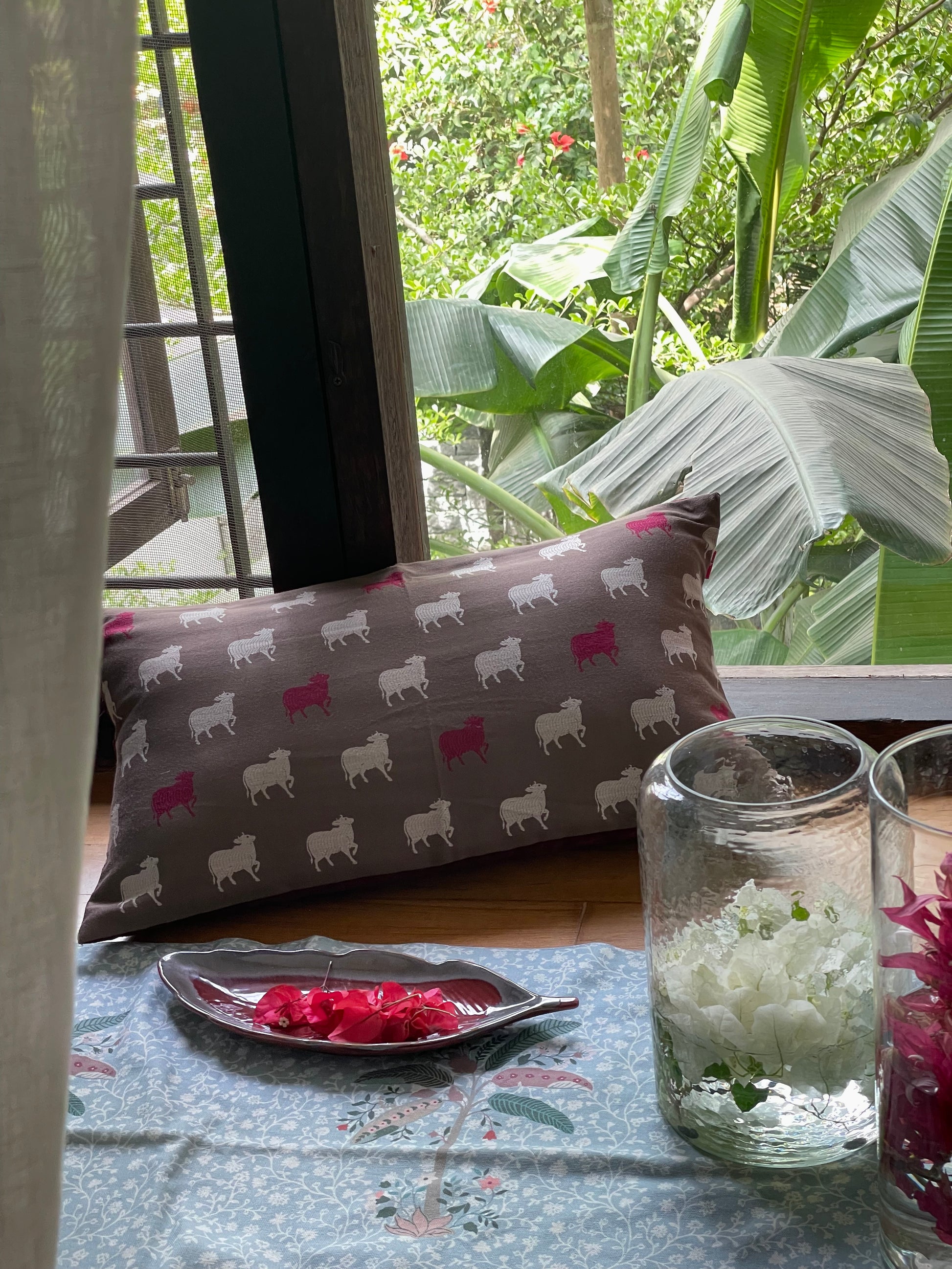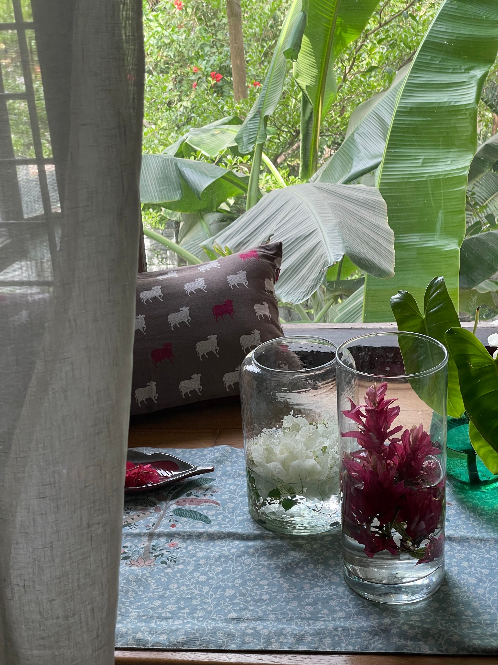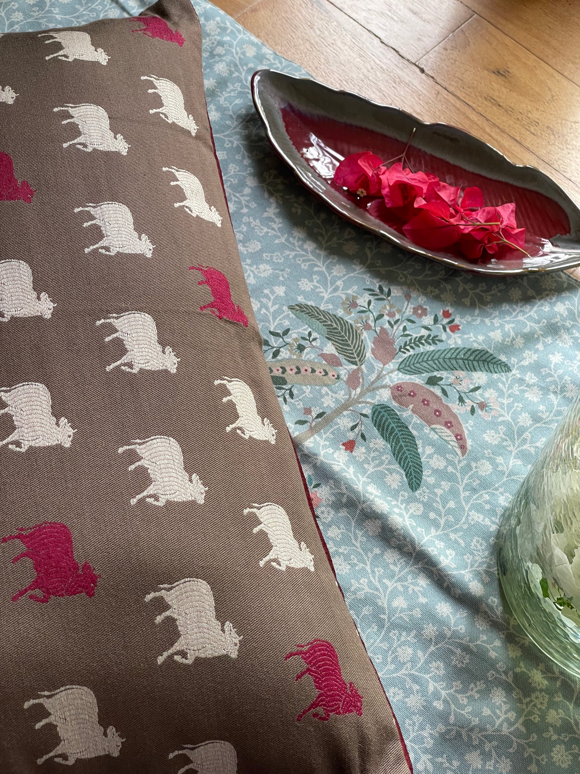 These festive cushion covers add elegance by their presence and narrate timeless tales of devotion, artistry and celebration carrying forward India’s rich legacy of textile storytelling. Red symbolizes purity, prosperity, and marital bliss, seen in Diwali decorations and bridal attire. Green is associated with life, renewal, and harmony, commonly used during Eid and Navratri. Pichwai art takes on a tactile richness, transforming cushions into expressions of heritage, culture, and spirituality.