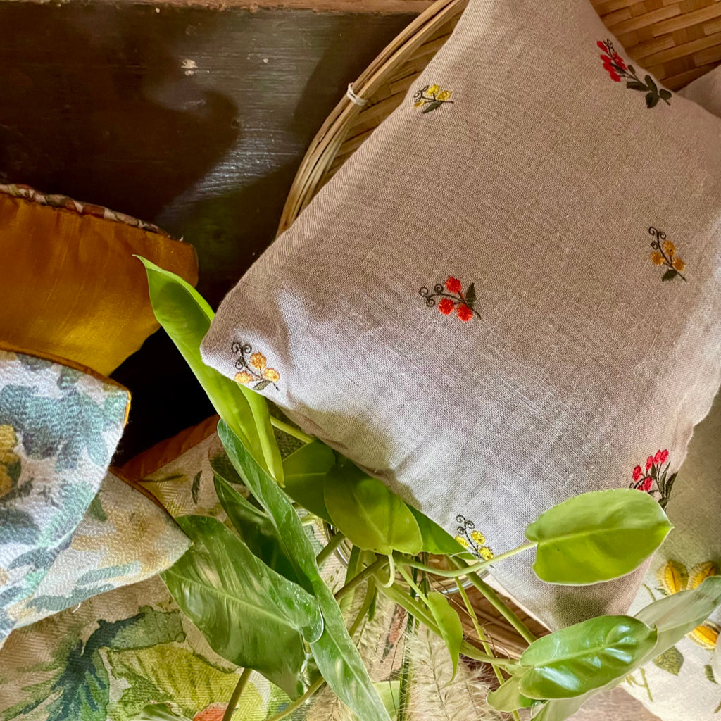 Mekong Almond & Sangria Cushion Cover with filler - 7 x 7 - Set of 2