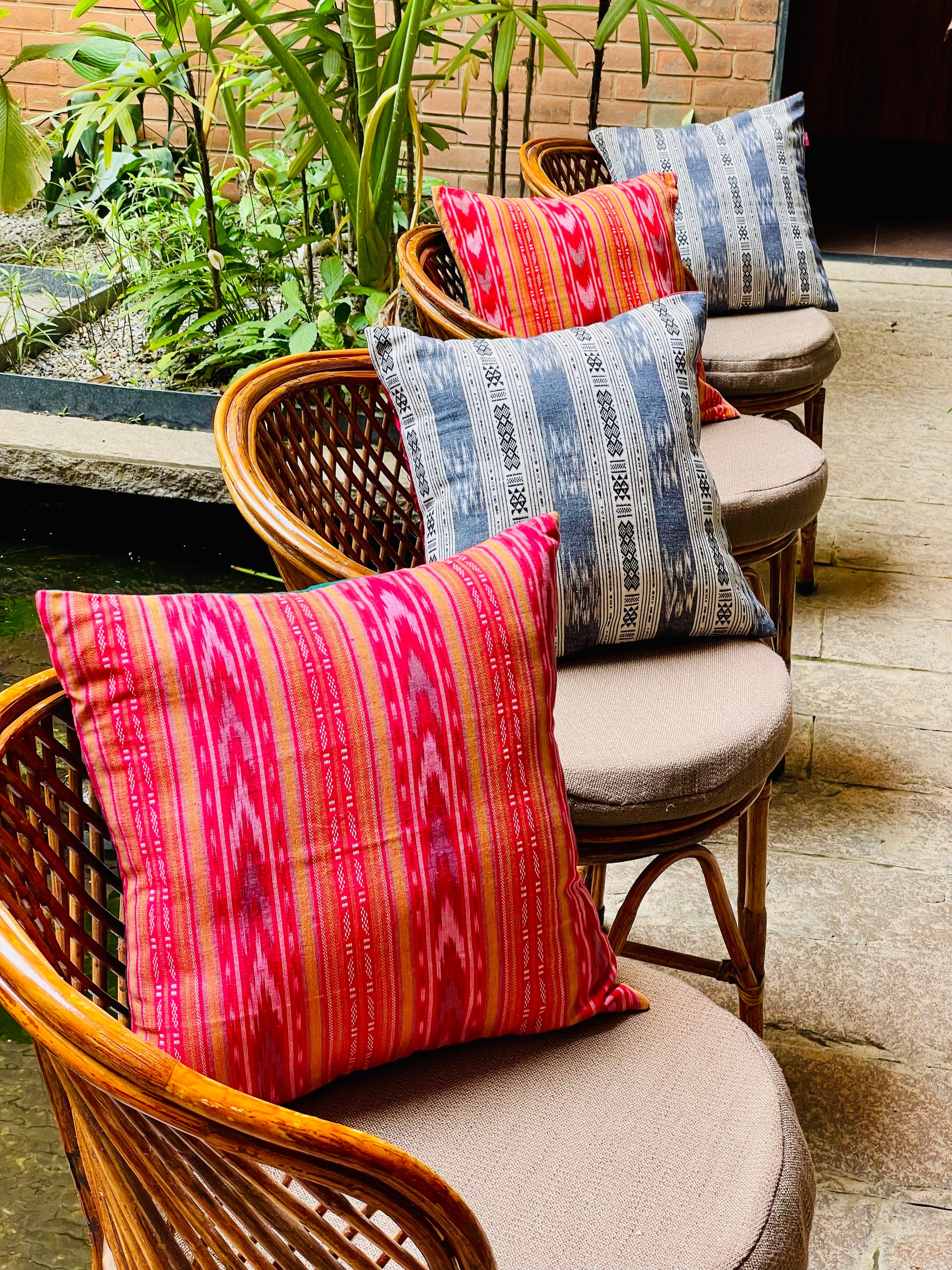 Vibrant cotton cushions promoting the crafts of India. Ikat cushions are a beautiful way to incorporate the rich heritage of Indian weaving into home décor. They serve not just as aesthetic elements but also as a reflection of the region’s artistry, tradition, and craftsmanship. By choosing Ikat cushions, you directly contribute to sustaining traditional weaving communities and preserving India’s rich textile heritage. Many artisans rely on these crafts for their livelihood, and purchasing authentic Ikat products helps keep these traditions alive.