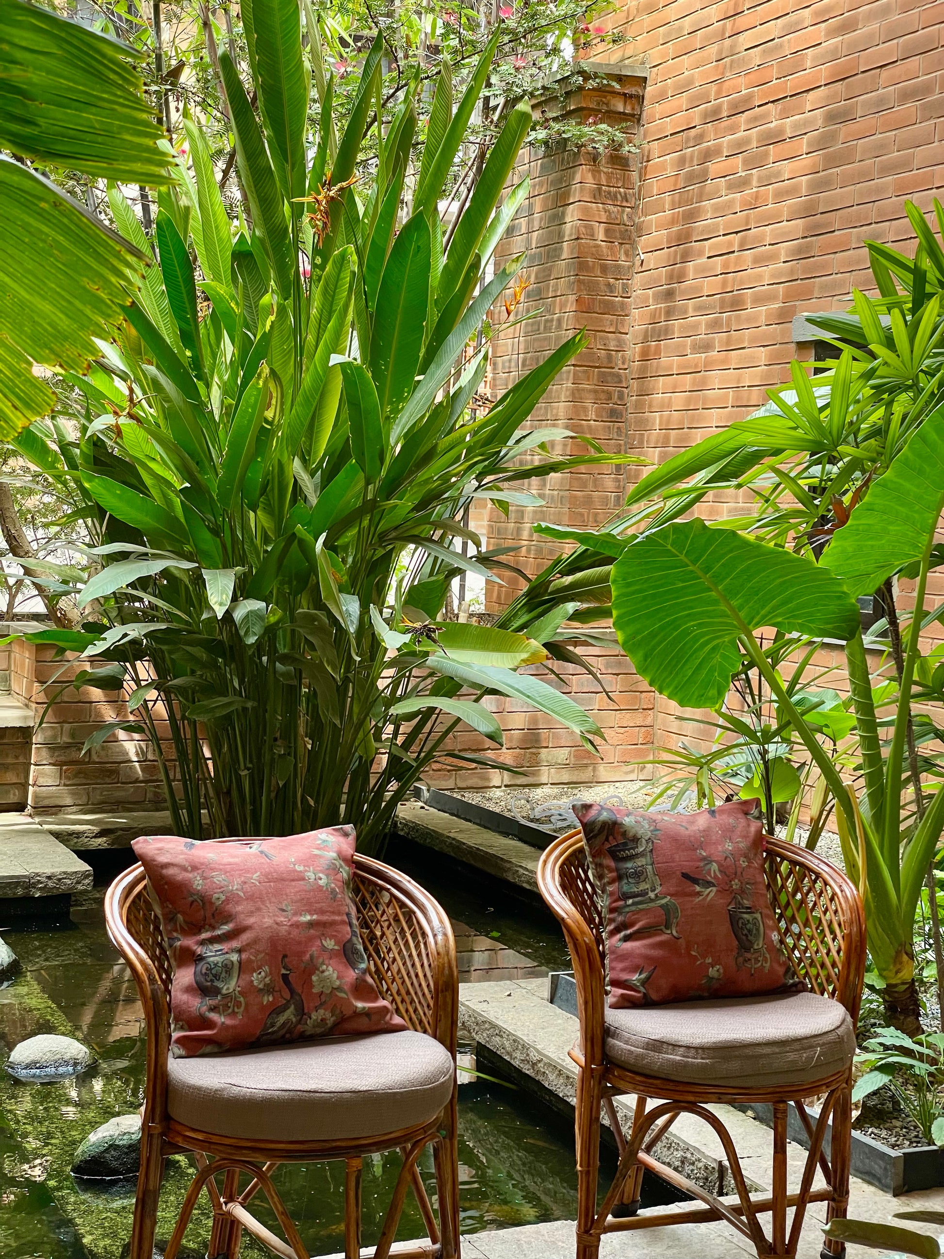 Mekong Almond & Sangria Cushion Cover with filler - 7 x 7 - Set of 2