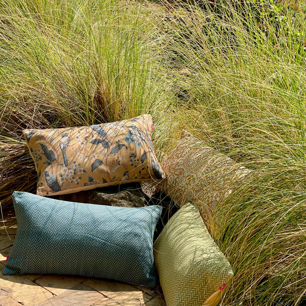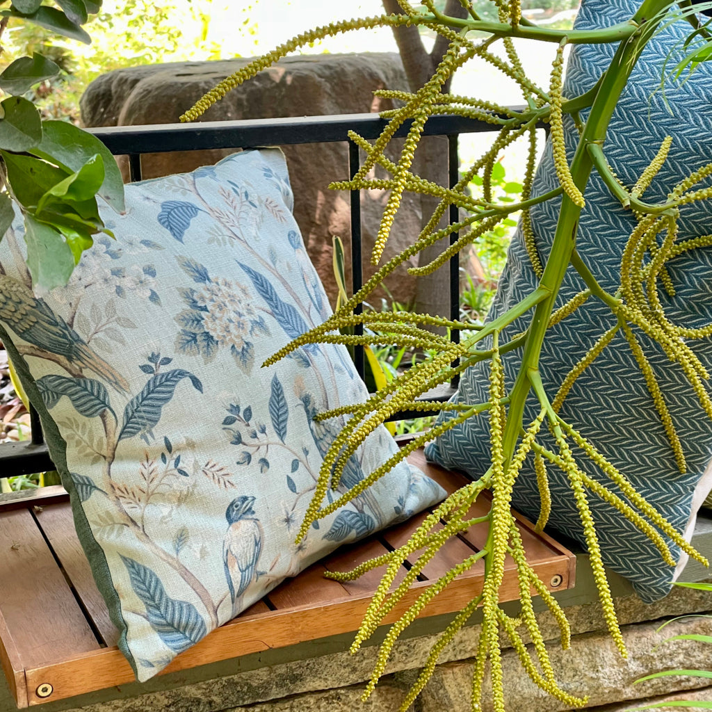 Cushions featuring bird and floral motifs add depth and emotion to a space. Bird and floral cushions bridge the indoors with the outdoors, making any space feel more alive and connected to nature. Whether placed in a classic, bohemian, or modern setting. Birds and floral designs on cushions are more than just decorative—they carry history, emotions, and artistic heritage. From regal peacocks in Persian textiles to delicate sparrows in European botanical prints, these designs continue to enchant and inspire, turning soft furnishings into visual narratives of the natural world. The combination of birds and floral motifs in textile design is a timeless artistic expression that tells stories of nature, culture, and symbolism. Birds, often depicted amid blooming flowers, evoke themes of freedom, harmony, and renewal, while florals represent beauty, growth, and the passage of time. When printed, embroidered, or woven onto cushions, these designs become more than decorative elements—they become storytellers, bringing history, elegance, and a sense of nature’s poetry into interiors. Each combination tells a unique story, whether it’s the elegance of a crane standing gracefully among lotus flowers or the playful movement of a hummingbird hovering near a hibiscus bloom.