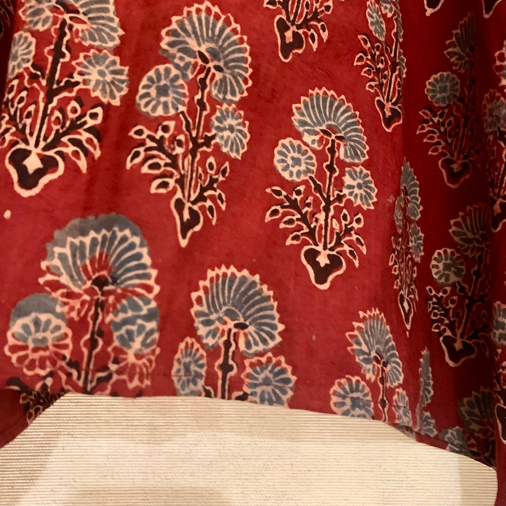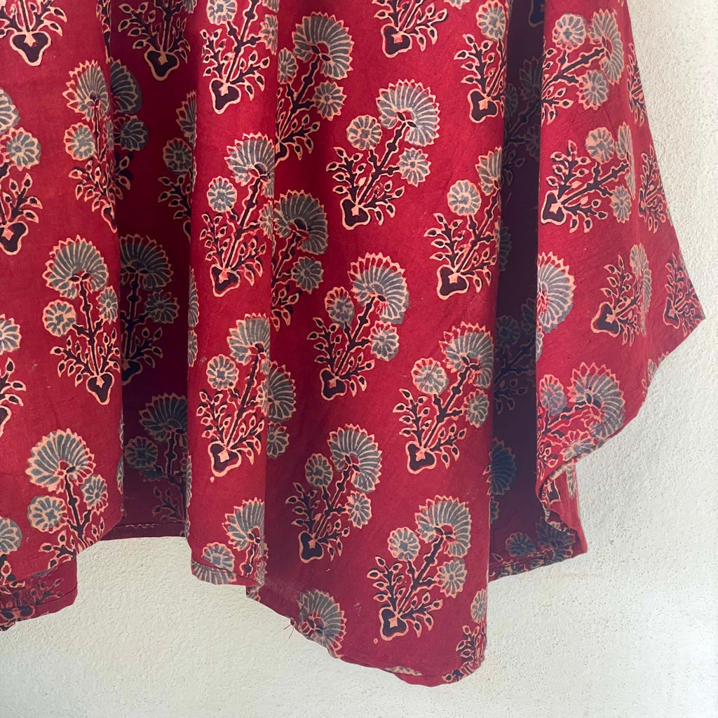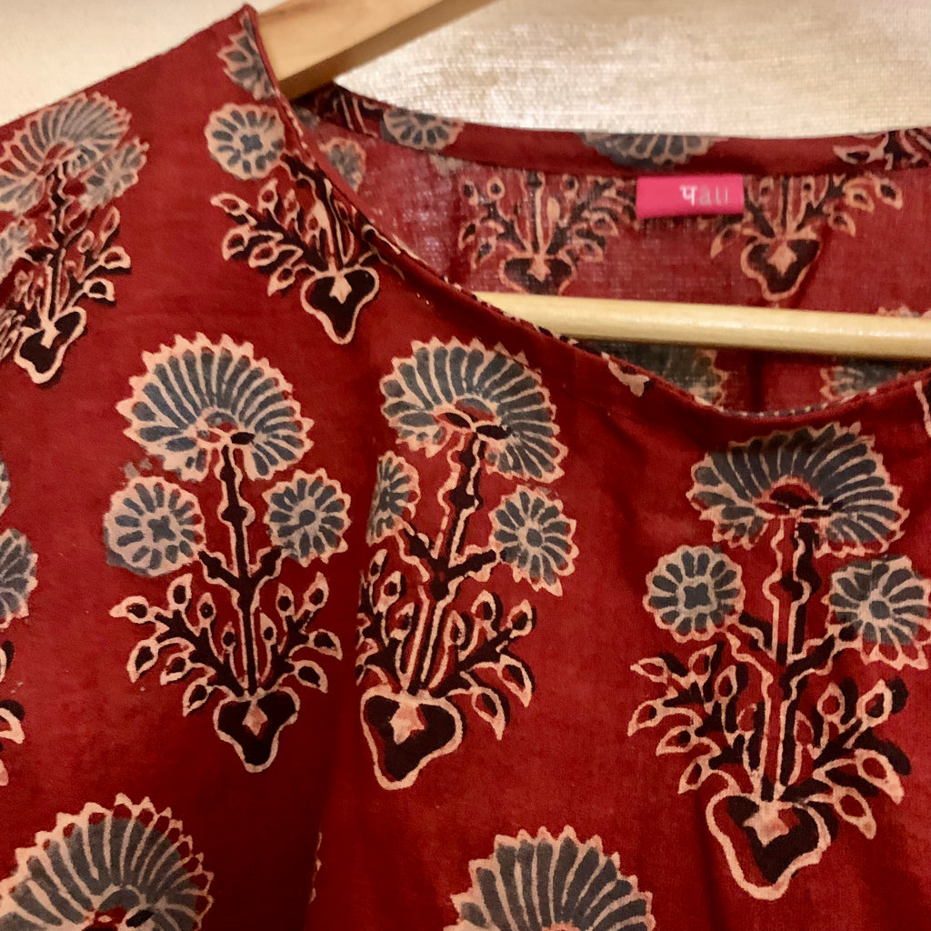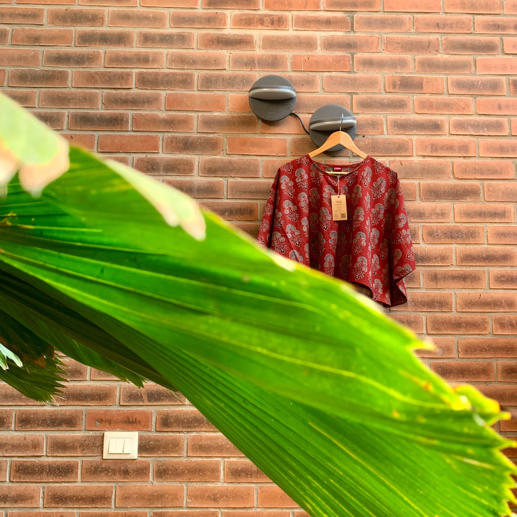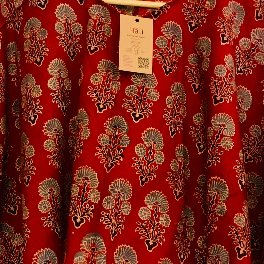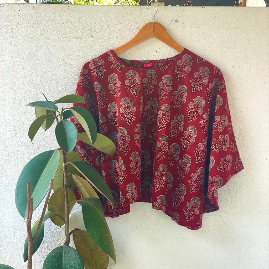 This contemporary silhouette blends traditional block-printed patterns with modern fashion, offering both comfort and style. Crafted from breathable cotton, it is ideal for India’s diverse climates. The charm of block printing lies in its handcrafted imperfections, showcasing the artisanal richness of Indian heritage. This centuries-old technique involves stamping intricate, hand-carved wooden blocks onto fabric, resulting in vibrant, culturally rooted designs. Lightweight and soft, block-printed cotton garments are versatile and comfortable for daily or festive wear. They pair well with skirts, shorts, jeans, or can be draped with a sari for a fresh, ethnic twist. Size: 43 inches x 20 inches ( Horizontal x Vertical )
