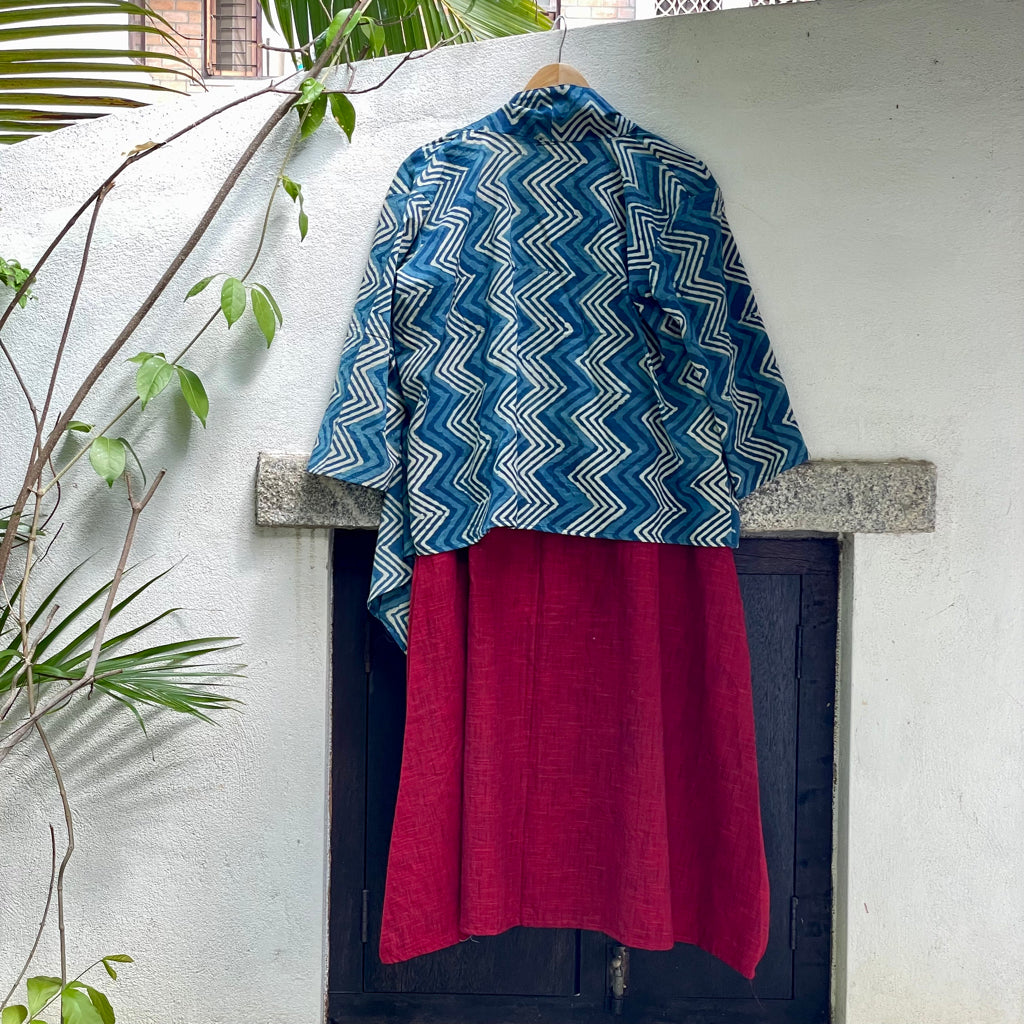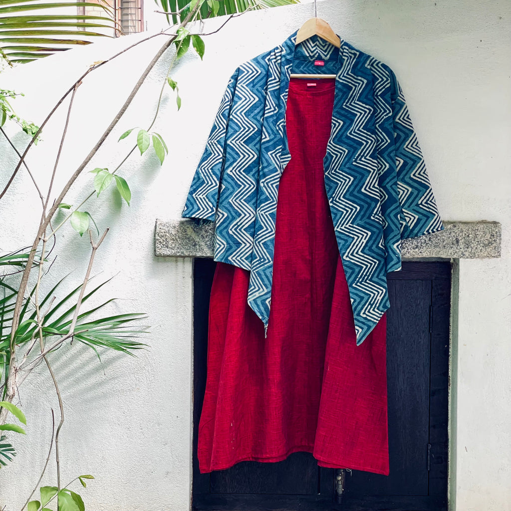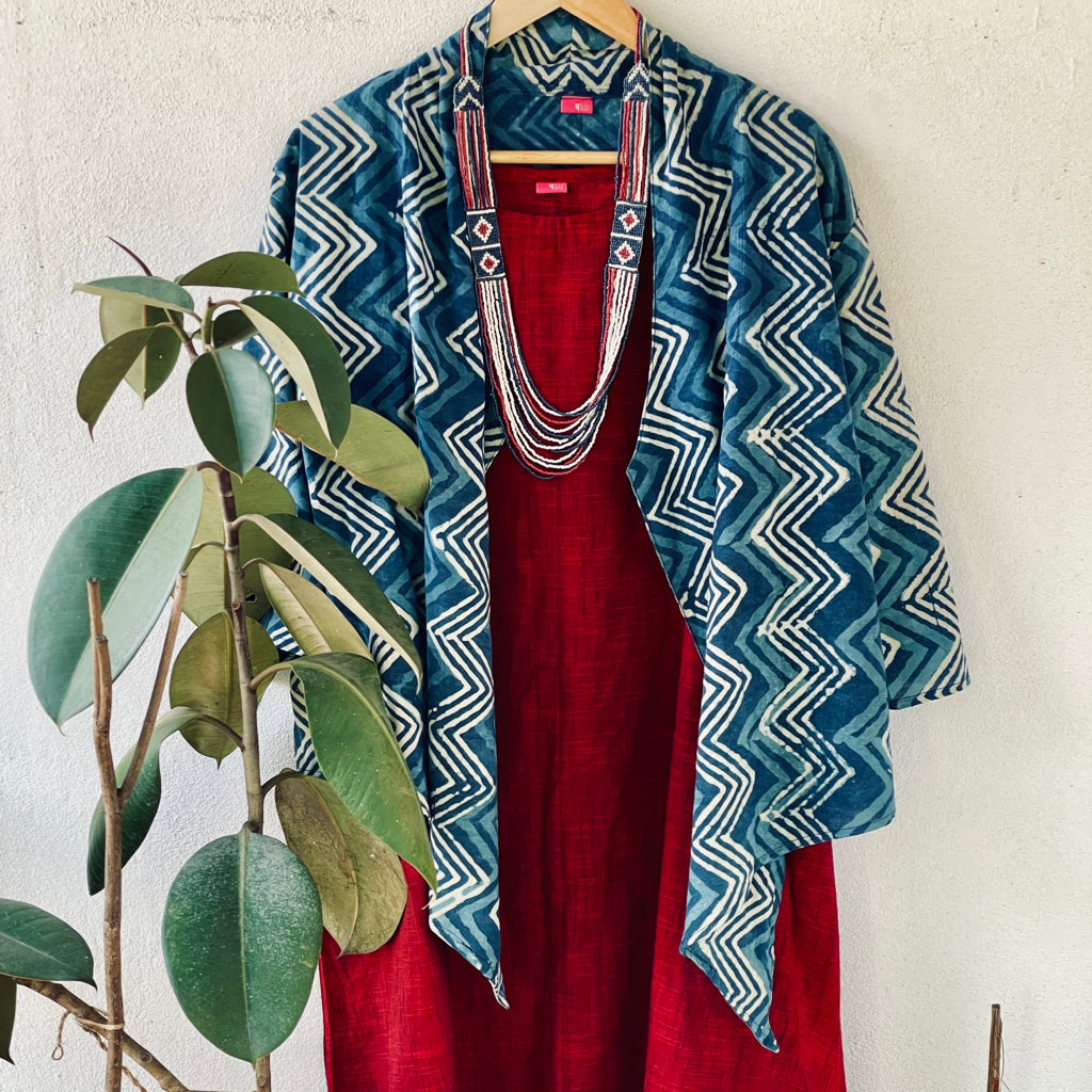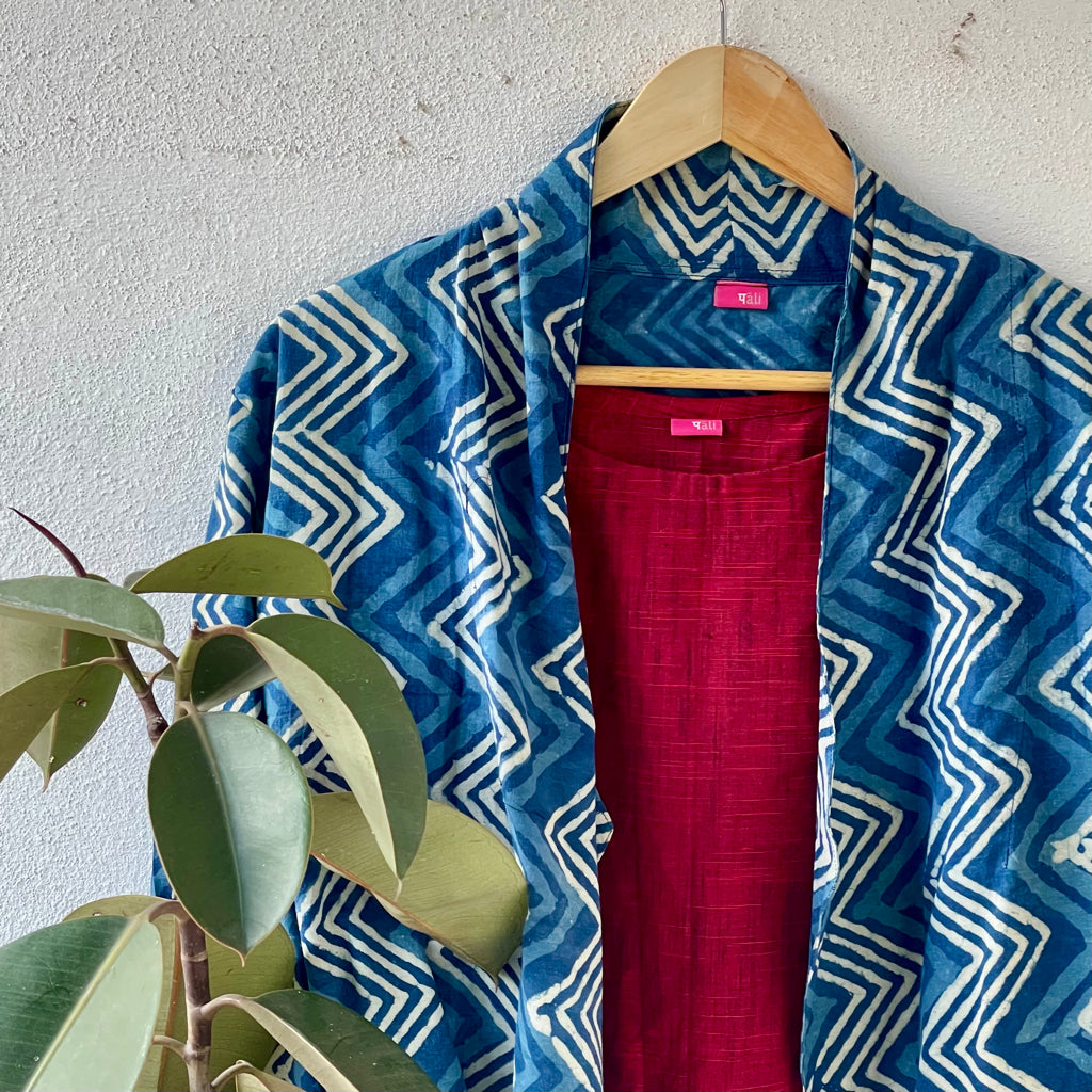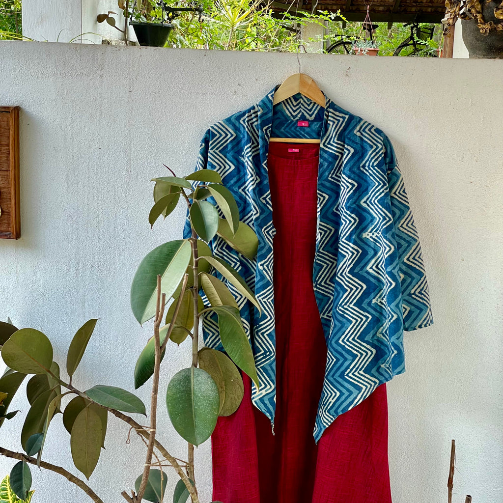 These cotton shrugs are a fabulous companion for any occasion, Works as a wonder on any sleeveless clothing- it is effortless to club the combos. Block printed shrugs are the ultimate summer layering essential—lightweight, breathable, and effortlessly stylish. Whether you’re dressing for the warmth of the day or the cool charm of an evening outing, these handcrafted pieces adapt beautifully to any look. During hot summer days, a block printed shrug adds just the right amount of coverage without weighing you down. Throw it over: A tank top and denim shorts for a casual outing. A solid kurta for a traditional twist. A cotton dress for a laid-back brunch look. The earthy prints and airy cotton keep you cool while adding a splash of artistic flair to your outfit. Block printed shrugs are as versatile as they are beautiful. They bring together the charm of tradition with the ease of modern styling—making them a must-have for both sunny days and starry nights. Shrug size: ( 28 Width x Length 33 x Shoulder 18 x Sleeve 26 ) inches