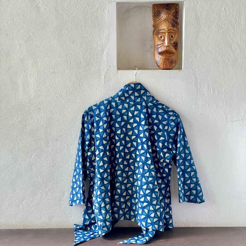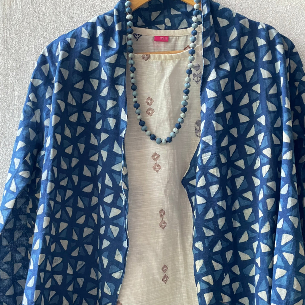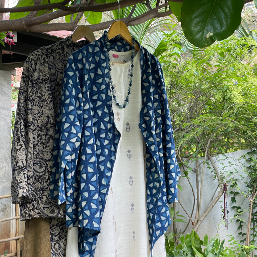 These cotton shrugs are a fabulous companion for any occasion, Works as a wonder on any sleeveless clothing- it is effortless to club the combos. Block printed shrugs are the ultimate summer layering essential—lightweight, breathable, and effortlessly stylish. Whether you’re dressing for the warmth of the day or the cool charm of an evening outing, these handcrafted pieces adapt beautifully to any look. During hot summer days, a block printed shrug adds just the right amount of coverage without weighing you down. Throw it over: A tank top and denim shorts for a casual outing. A solid kurta for a traditional twist. A cotton dress for a laid-back brunch look. The earthy prints and airy cotton keep you cool while adding a splash of artistic flair to your outfit. Block printed shrugs are as versatile as they are beautiful. They bring together the charm of tradition with the ease of modern styling—making them a must-have for both sunny days and starry nights. Shrug size: ( 28 Width x Length 33 x Shoulder 18 x Sleeve 26 ) inches