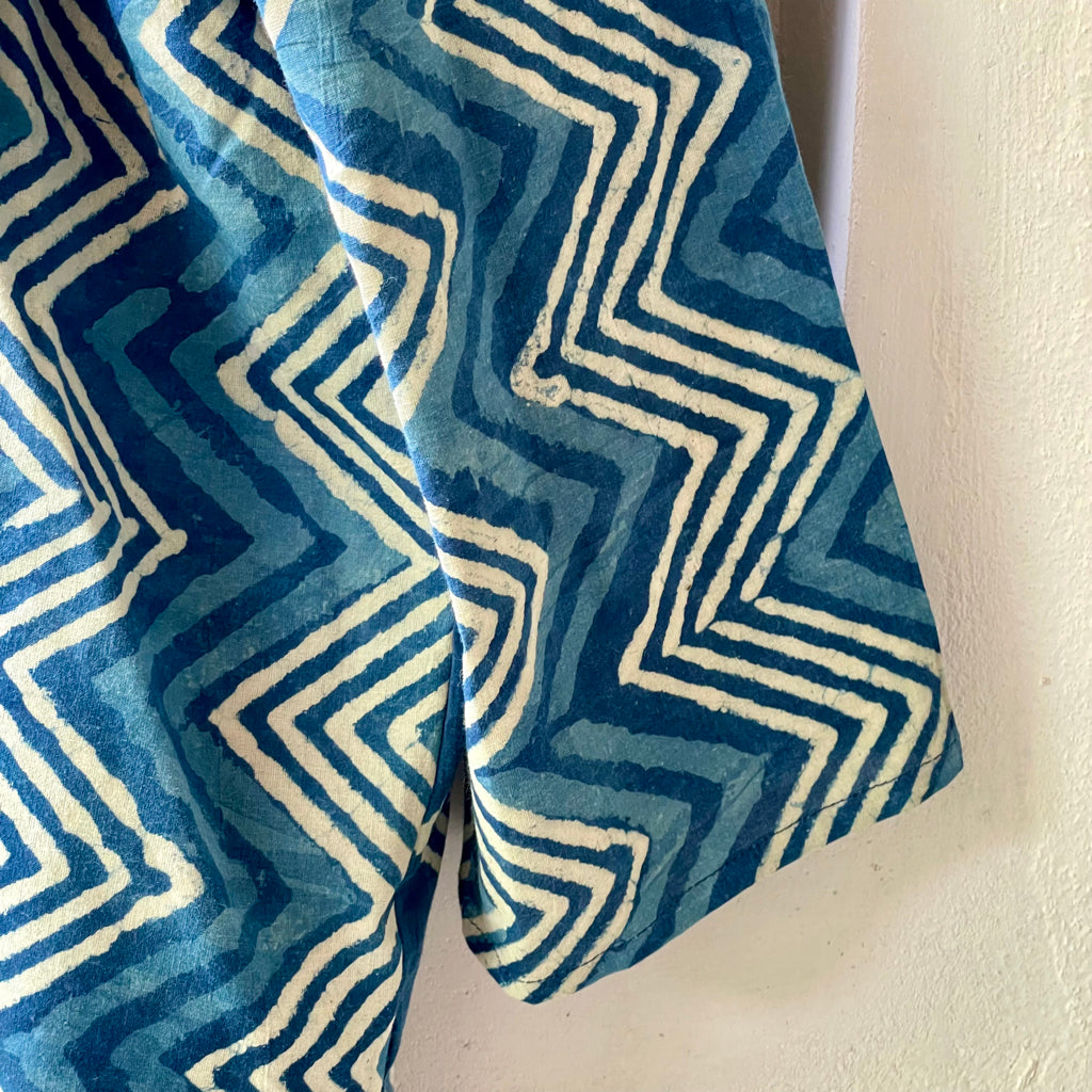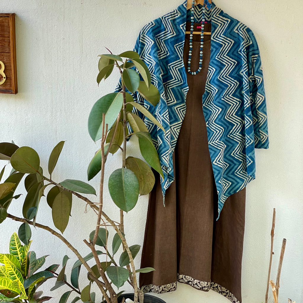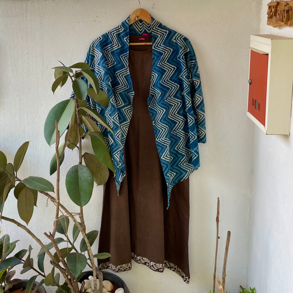 These cotton shrugs are a fabulous companion for any occasion, Works as a wonder on any sleeveless clothing- it is effortless to club the combos. Block printed shrugs are the ultimate summer layering essential—lightweight, breathable, and effortlessly stylish. Whether you’re dressing for the warmth of the day or the cool charm of an evening outing, these handcrafted pieces adapt beautifully to any look. During hot summer days, a block printed shrug adds just the right amount of coverage without weighing you down. Throw it over: A tank top and denim shorts for a casual outing. A solid kurta for a traditional twist. A cotton dress for a laid-back brunch look. The earthy prints and airy cotton keep you cool while adding a splash of artistic flair to your outfit. Block printed shrugs are as versatile as they are beautiful. They bring together the charm of tradition with the ease of modern styling—making them a must-have for both sunny days and starry nights. Shrug size: ( 28 Width x Length 33 x Shoulder 18 x Sleeve 26 ) inches