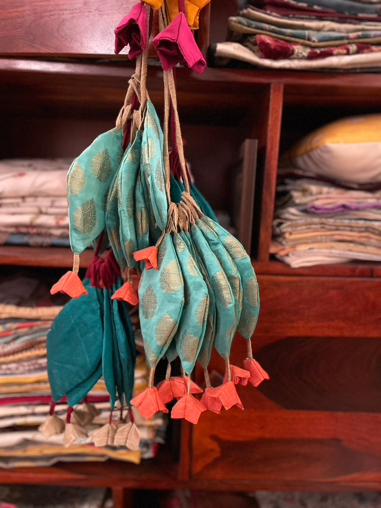 A Toran is a decorative hanging that is traditionally placed at the entrance of homes in India. It holds cultural significance and has a long-standing history, symbolizing welcome and prosperity. Torans are used to decorate the main entrance of the home. The main idea behind decorating the homes is to please and attract the goddess of wealth, Lakshmi. These torans are the first thing that welcomes guests. Hanging a Toran at the entrance is a traditional way to greet the guests. It represents warmth and hospitality ensuring that visitors feel welcomed even before stepping inside. It is a symbol of prosperity, protection and hospitality and add a cultural charm to the doorway.