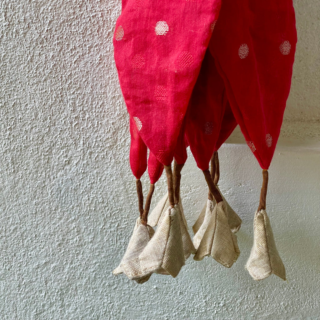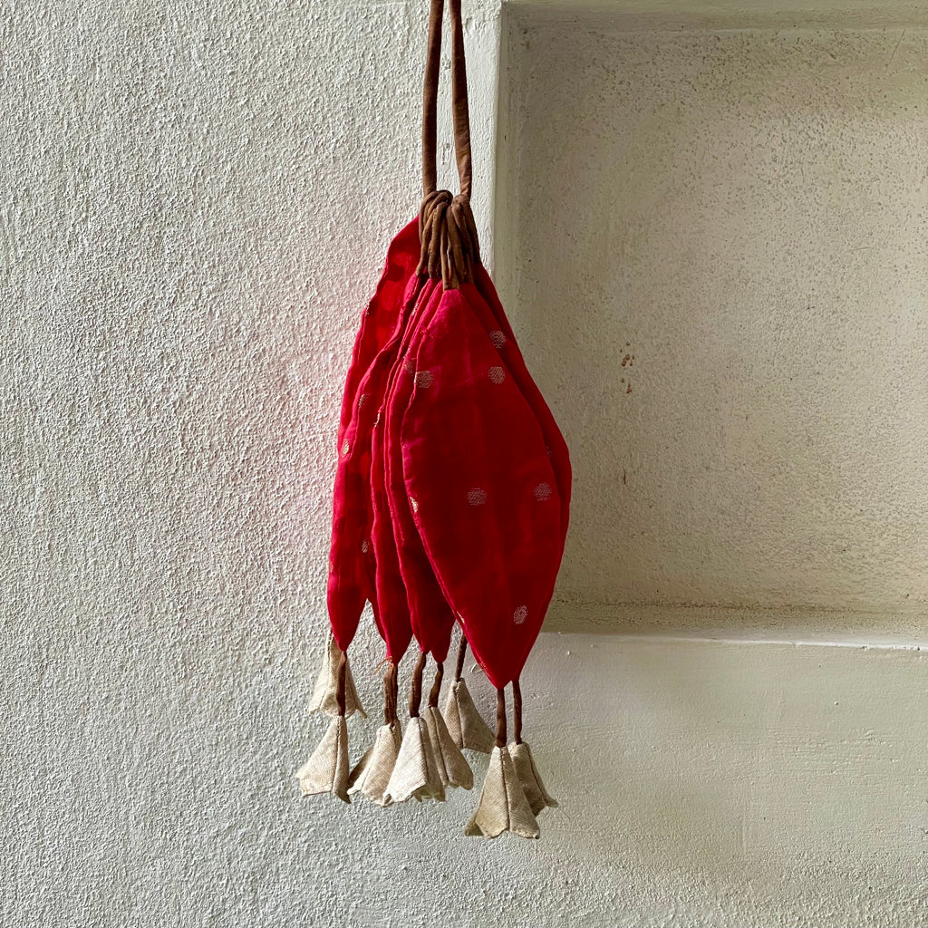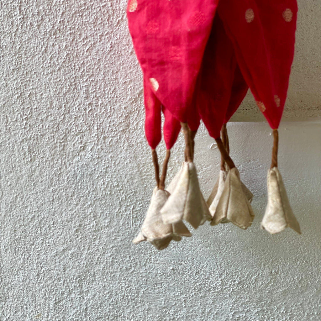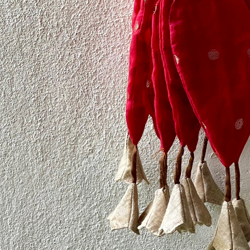 A Toran is a decorative hanging that is traditionally placed at the entrance of homes in India. It holds cultural significance and has a long-standing history, symbolizing welcome and prosperity. Torans are used to decorate the main entrance of the home. The main idea behind decorating the homes is to please and attract the goddess of wealth, Lakshmi. These torans are the first thing that welcomes guests. Hanging a Toran at the entrance is a traditional way to greet the guests. It represents warmth and hospitality ensuring that visitors feel welcomed even before stepping inside. It is a symbol of prosperity, protection and hospitality and add a cultural charm to the doorway.