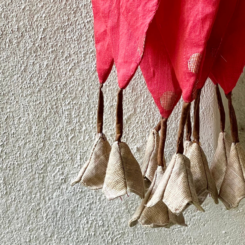 A Toran is a decorative hanging that is traditionally placed at the entrance of homes in India. It holds cultural significance and has a long-standing history, symbolizing welcome and prosperity. Torans are used to decorate the main entrance of the home. The main idea behind decorating the homes is to please and attract the goddess of wealth, Lakshmi. These torans are the first thing that welcomes guests. Hanging a Toran at the entrance is a traditional way to greet the guests. It represents warmth and hospitality ensuring that visitors feel welcomed even before stepping inside. It is a symbol of prosperity, protection and hospitality and add a cultural charm to the doorway.