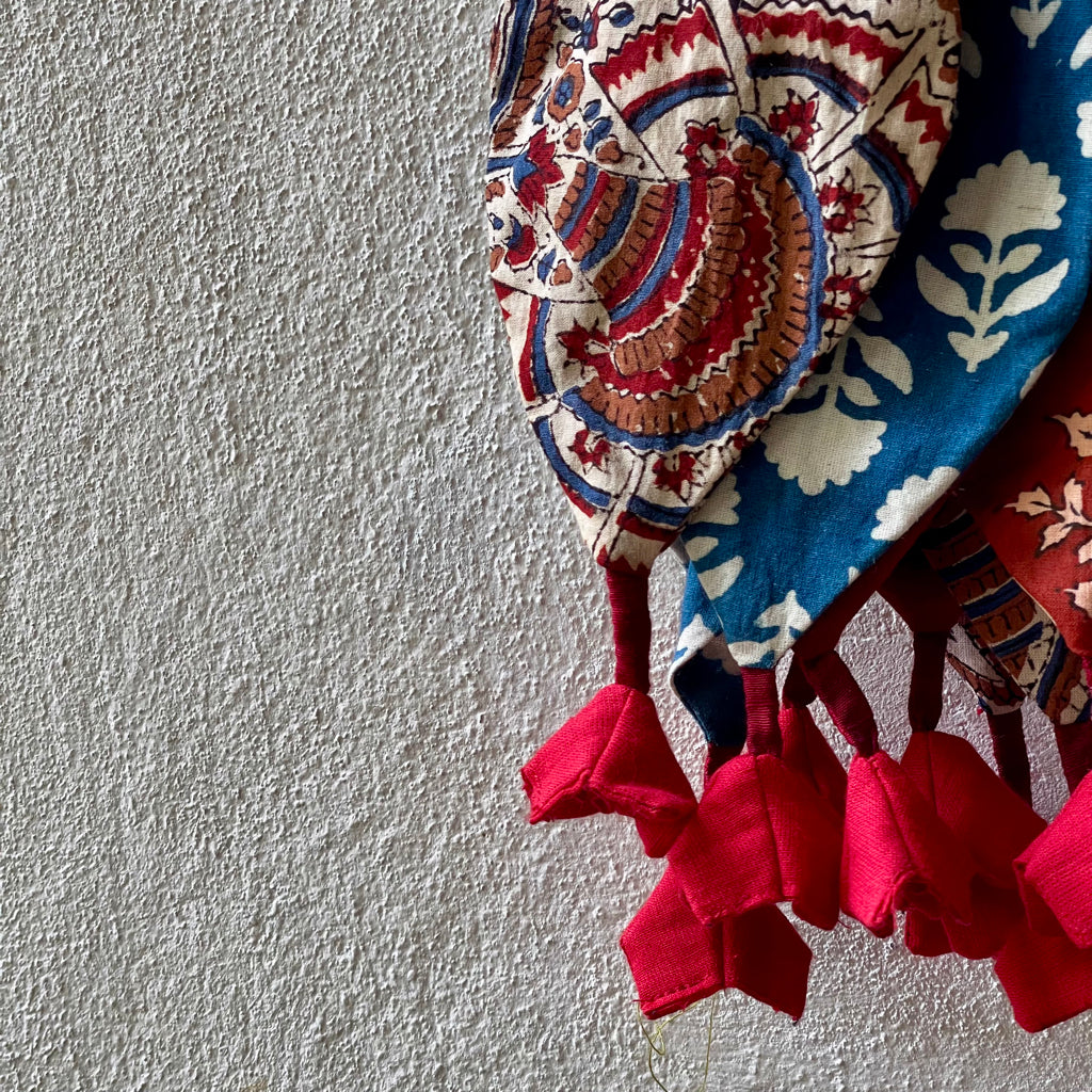 Toran is a decorative gateway hanging traditionally placed at the entrance of Indian homes. Made from vibrant materials like fabrics and fabric flowers, it welcomes guests with warmth and positivity. Symbolically, Toran represents prosperity, good fortune, and the warding off of negative energies. Often used during festivals and auspicious occasions, it enhances the aesthetic appeal of doorways. The presence of a Toran is rooted in the belief that a well-decorated entrance invites happiness and divine blessings into the home. It stands as a beautiful blend of tradition, spirituality, and hospitality.