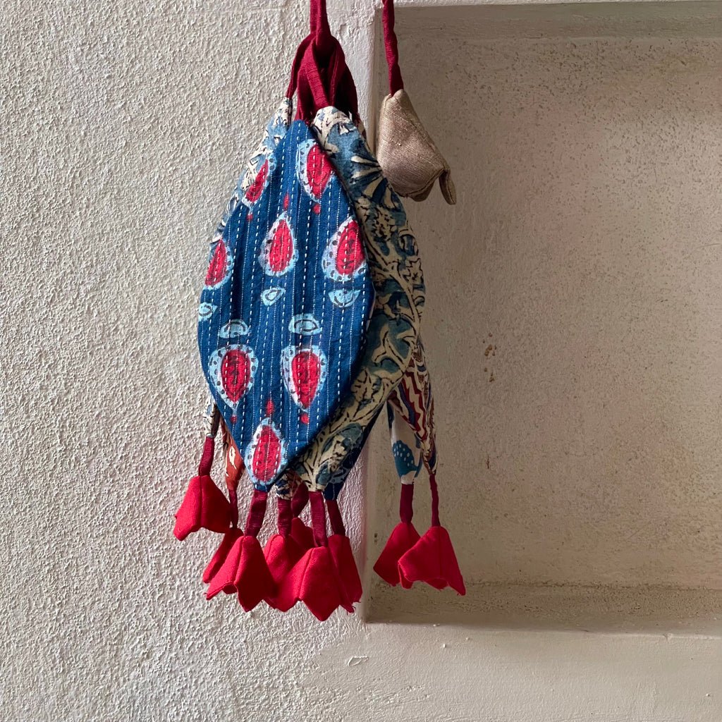 Toran is a decorative gateway hanging traditionally placed at the entrance of Indian homes. Made from vibrant materials like fabrics and fabric flowers, it welcomes guests with warmth and positivity. Symbolically, Toran represents prosperity, good fortune, and the warding off of negative energies. Often used during festivals and auspicious occasions, it enhances the aesthetic appeal of doorways. The presence of a Toran is rooted in the belief that a well-decorated entrance invites happiness and divine blessings into the home. It stands as a beautiful blend of tradition, spirituality, and hospitality.