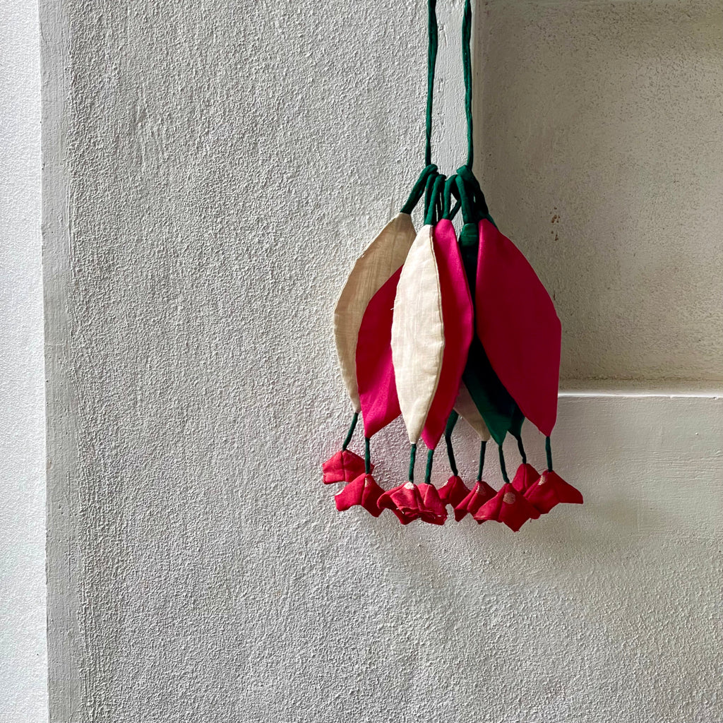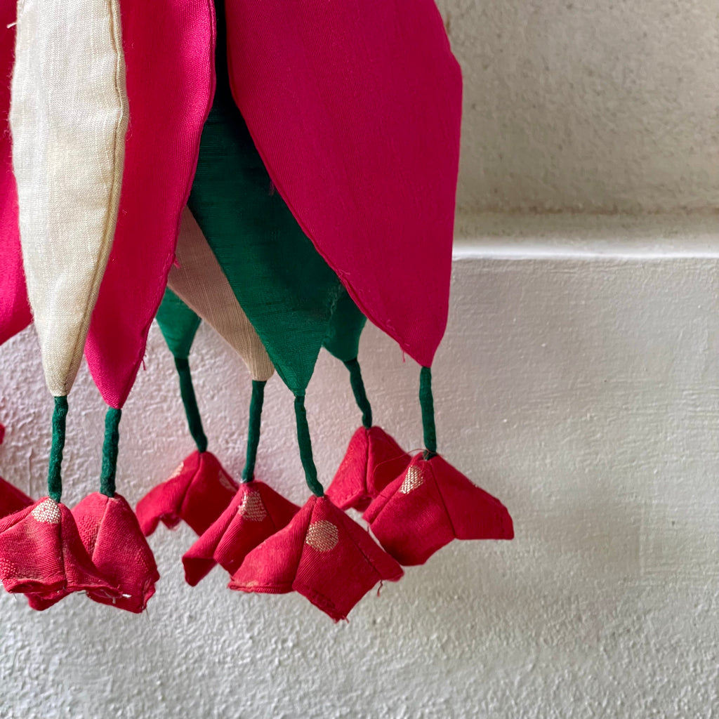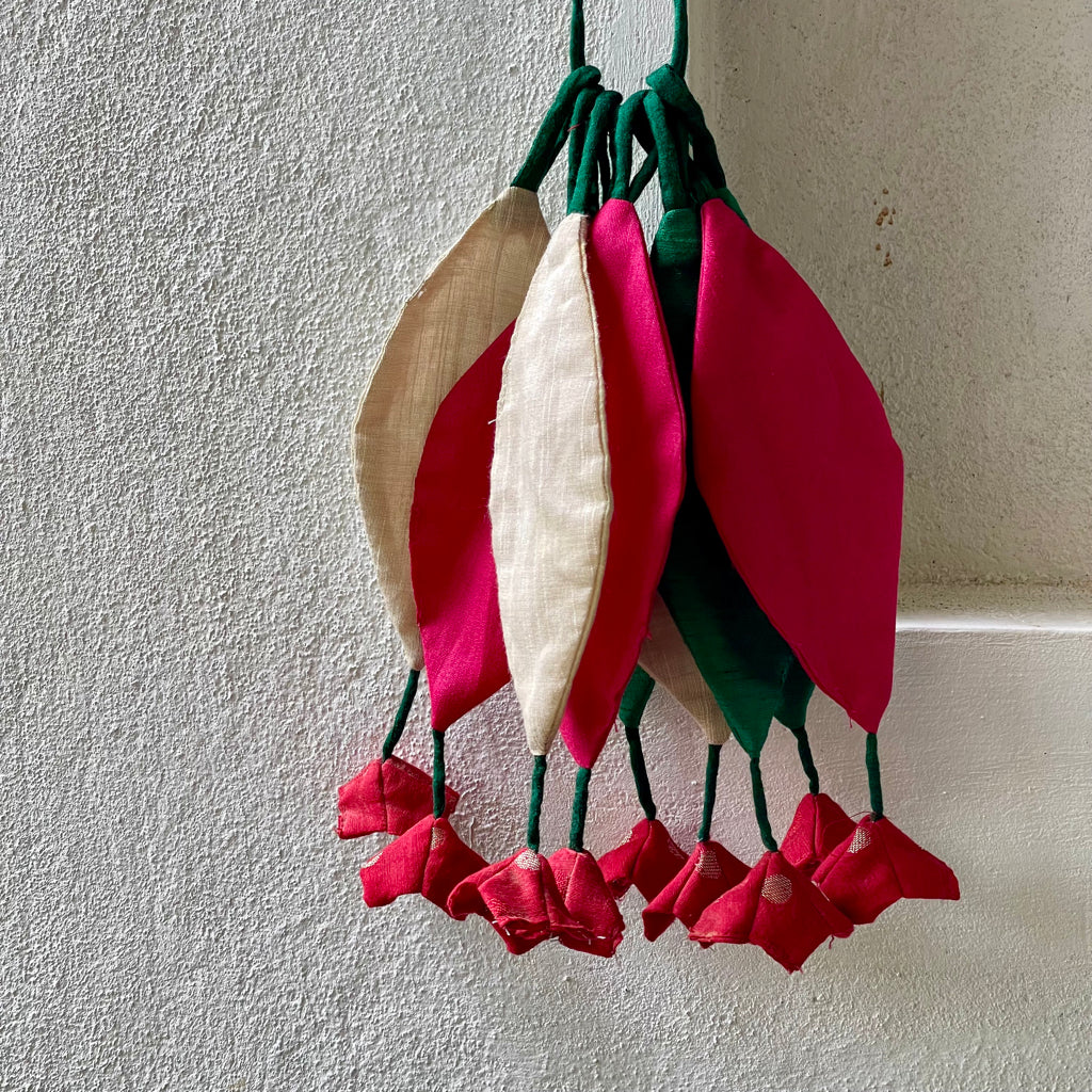 Toran is a decorative gateway hanging traditionally placed at the entrance of Indian homes. Made from vibrant materials like fabrics and fabric flowers, it welcomes guests with warmth and positivity. Symbolically, Toran represents prosperity, good fortune, and the warding off of negative energies. Often used during festivals and auspicious occasions, it enhances the aesthetic appeal of doorways. The presence of a Toran is rooted in the belief that a well-decorated entrance invites happiness and divine blessings into the home. It stands as a beautiful blend of tradition, spirituality, and hospitality.