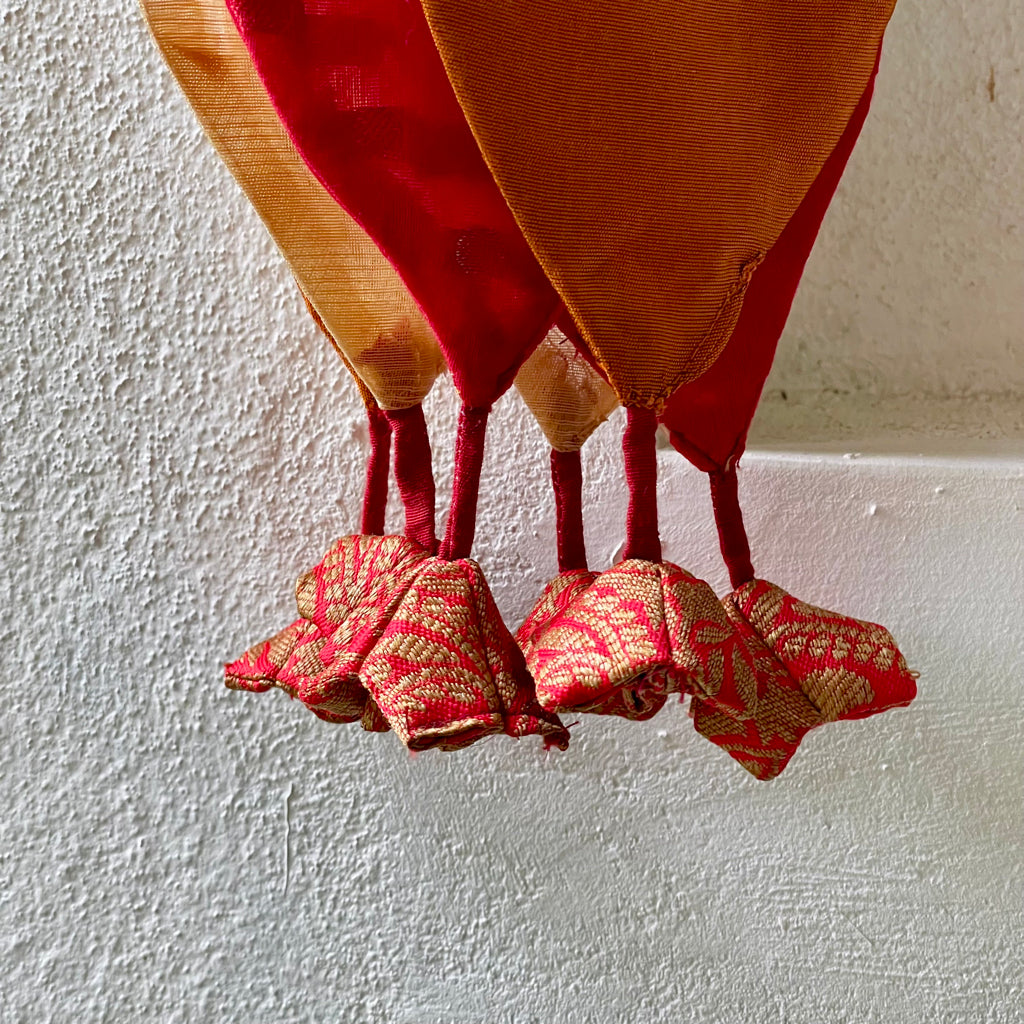 A Toran is a decorative hanging that is traditionally placed at the entrance of homes in India. It holds cultural significance and has a long-standing history, symbolizing welcome and prosperity. Torans are used to decorate the main entrance of the home. The main idea behind decorating the homes is to please and attract the goddess of wealth, Lakshmi. These torans are the first thing that welcomes guests. Hanging a Toran at the entrance is a traditional way to greet the guests. It represents warmth and hospitality ensuring that visitors feel welcomed even before stepping inside. It is a symbol of prosperity, protection and hospitality and add a cultural charm to the doorway.