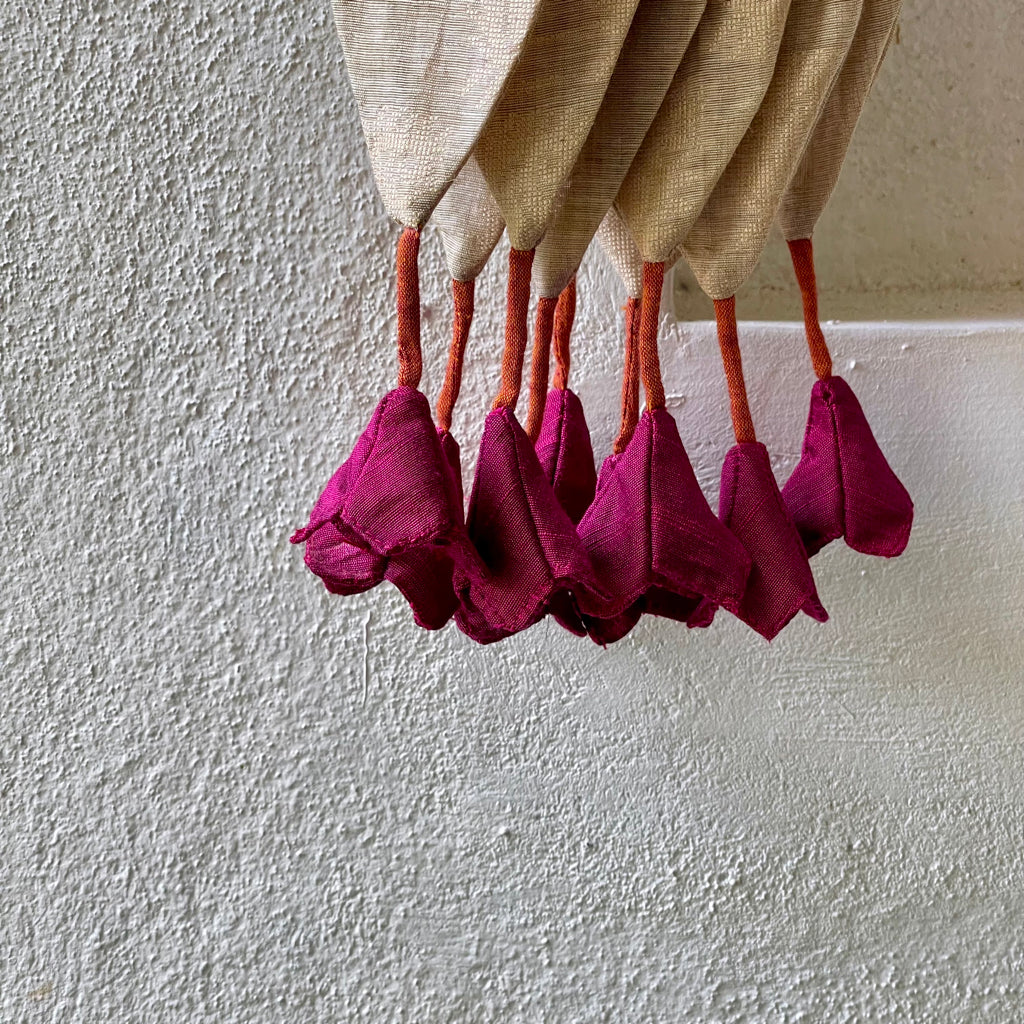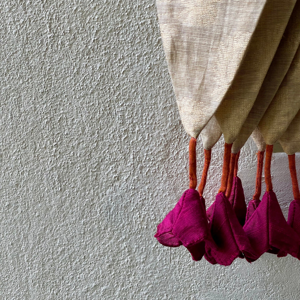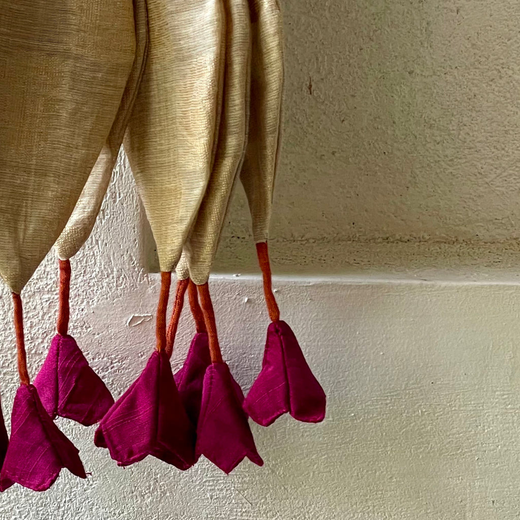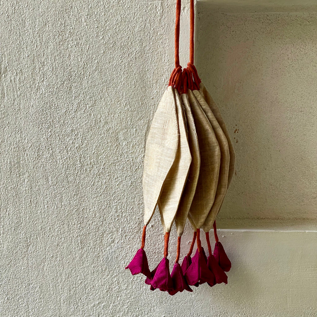 Toran is a decorative gateway hanging traditionally placed at the entrance of Indian homes. Made from vibrant materials like fabrics and fabric flowers, it welcomes guests with warmth and positivity. Symbolically, Toran represents prosperity, good fortune, and the warding off of negative energies. Often used during festivals and auspicious occasions, it enhances the aesthetic appeal of doorways. The presence of a Toran is rooted in the belief that a well-decorated entrance invites happiness and divine blessings into the home. It stands as a beautiful blend of tradition, spirituality, and hospitality.