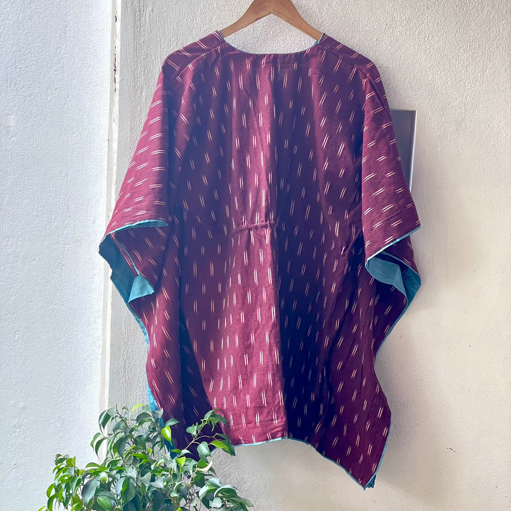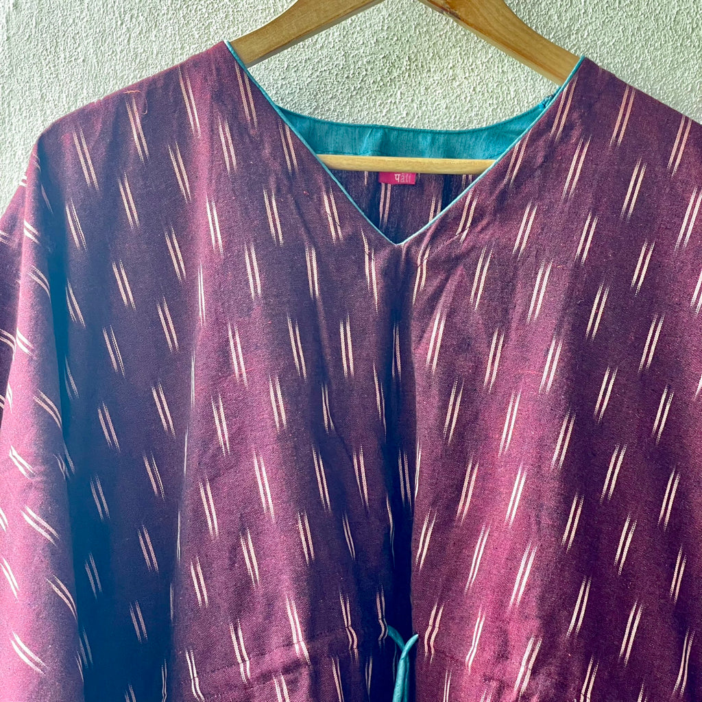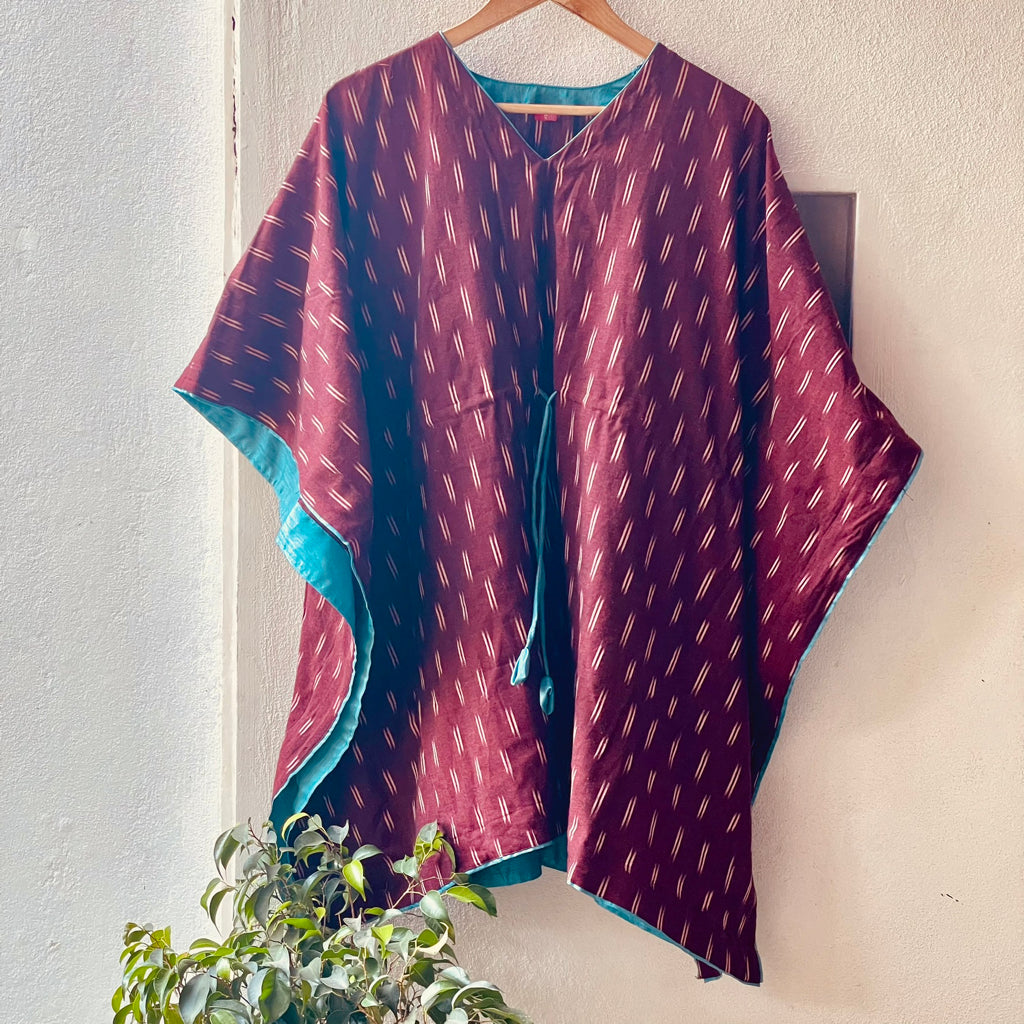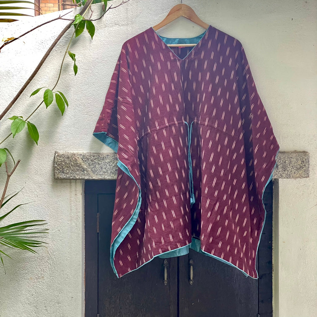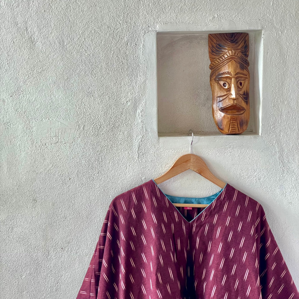 Kaftans made from Indian Ikat fabrics offer a fusion of comfort, fluidity, and storytelling. Each kaftan tells the story of generations of artisans, dyeing and weaving patterns rooted in local traditions. Indian Ikat is often handcrafted, supporting slow fashion and ethical production. India is home to some of the world’s finest Ikat traditions, primarily from: Depending on the silhouette and accessories, an Ikat kaftan can be styled for a bohemian-chic, resort-glam, or cultural-luxe evening look. Kaftans made from Indian Ikat fabrics offer a fusion of comfort, fluidity, and storytelling. They are lightweight, breathable, and drape beautifully, making them ideal for sophisticated evening wear.